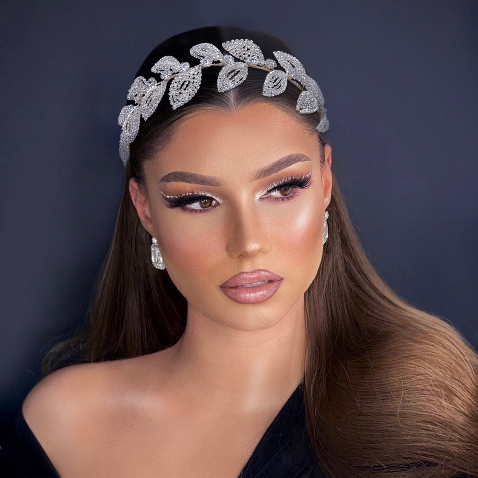 BRIDELLA BHP578 Bridal Headband Handmade Leaf Headpiece for Woman Wedding Hair Accessories Bride Tiara Rhinestone Headdress