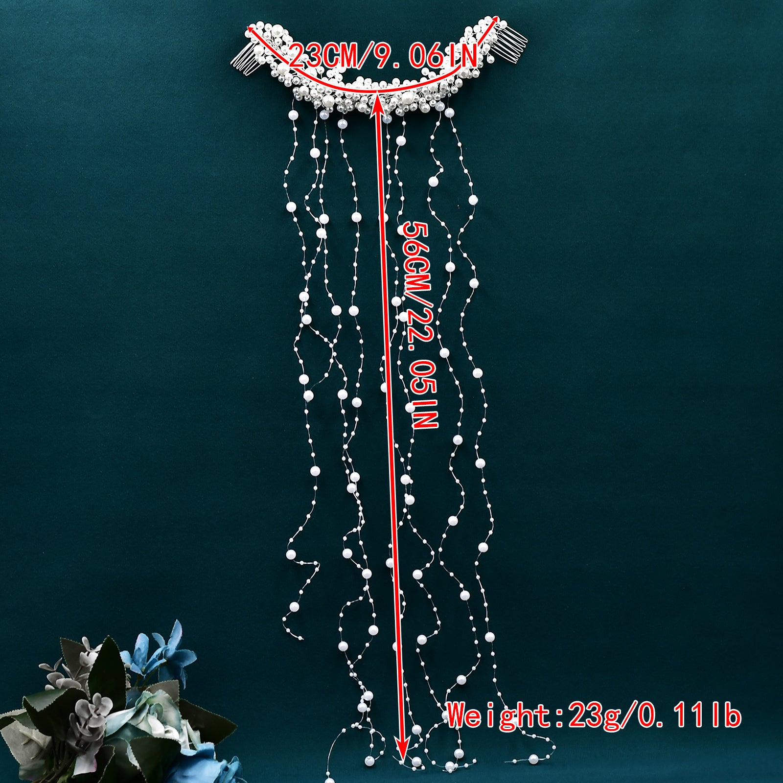 BRIDELLA BHP600 Pearls Tassels Bridal Headband with Combs Wedding Hair Accessories Handmade Woman Girls Headdress for Party