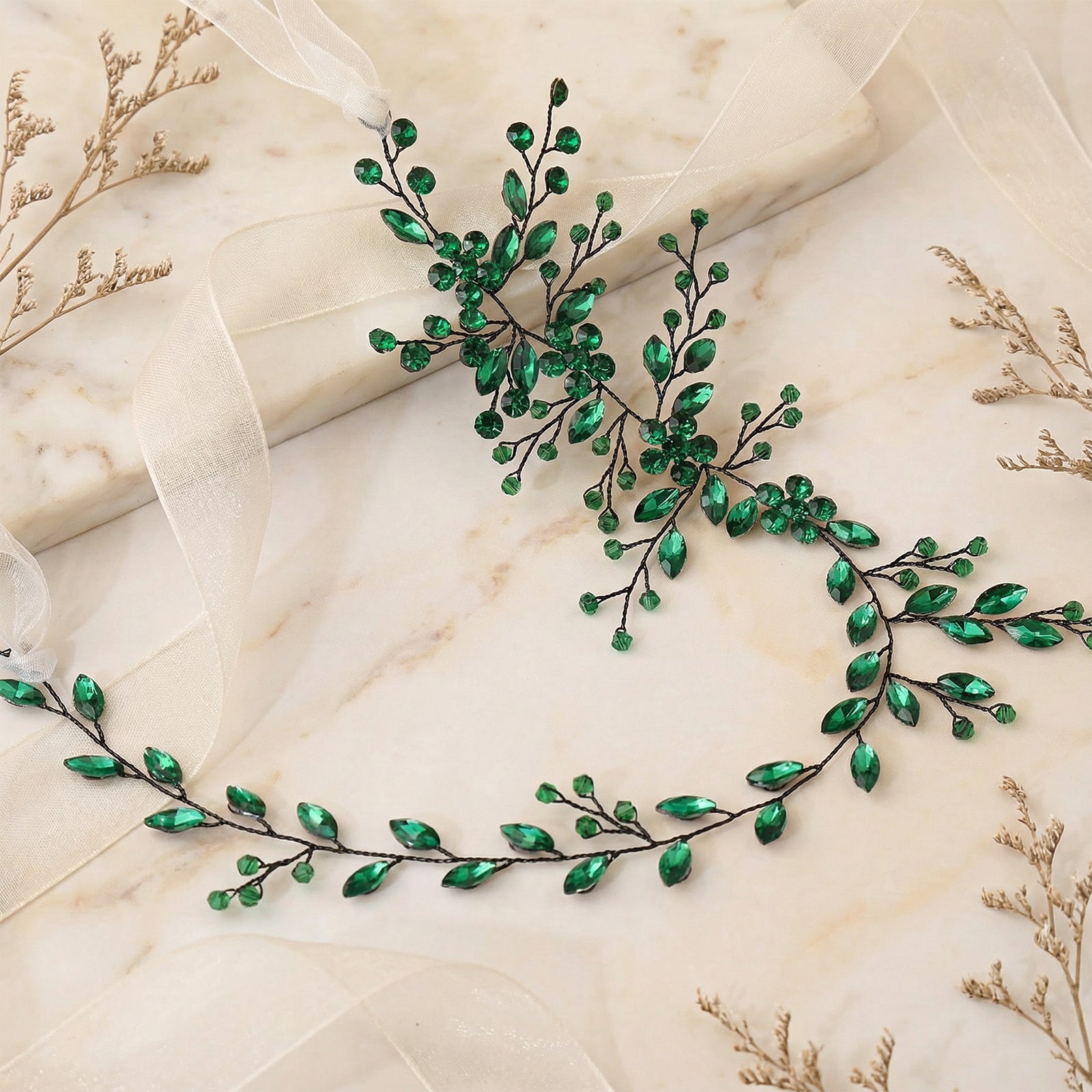 Bridella BHP65-KL Green Rhinestone & Crystal Headband