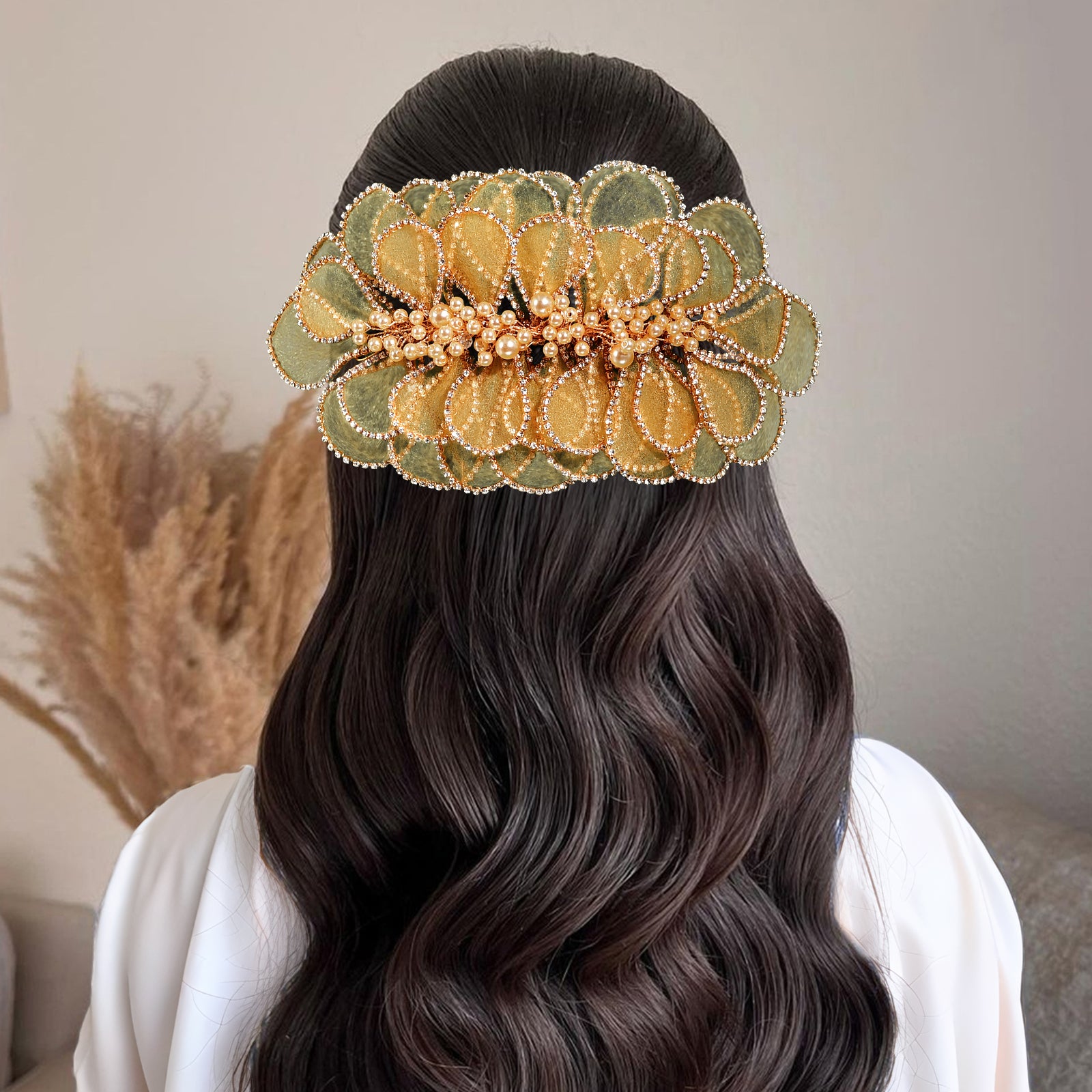 Material Composition: Rhinestones, Pearls, Organza flowers