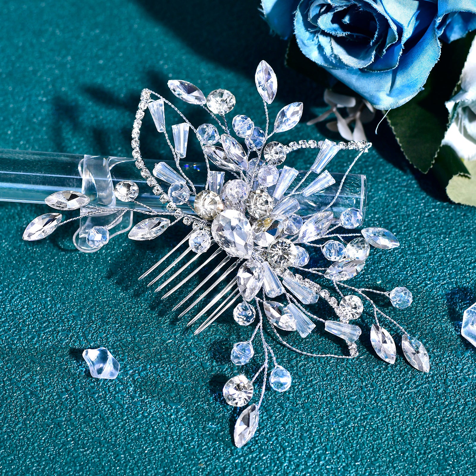 BRIDELLA BHP831 Silver Color Hair Comb Rhinestone Bride Head Clips Crystal Wedding Headpieces Hair Accessories Women Headwear
