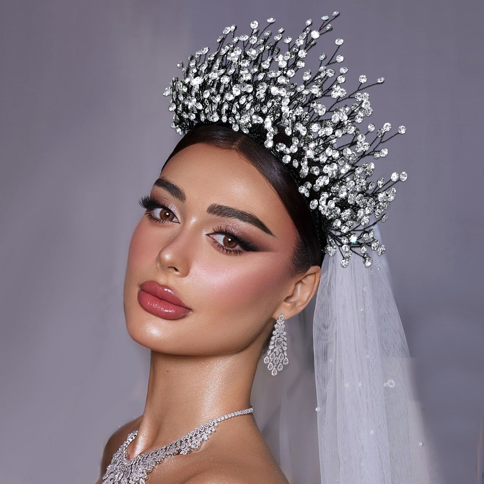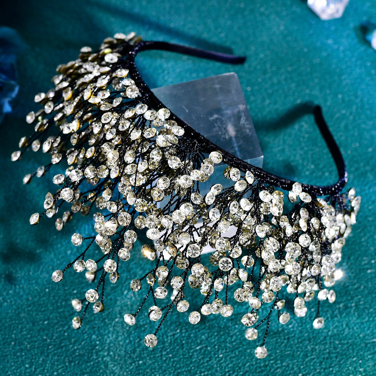 BRIDELLA BHP846 Handmade Rhinestone Bridal Crown Hairpiece Luxury Boho Wedding Hair Jewelry for Bride Party Headband Accessories