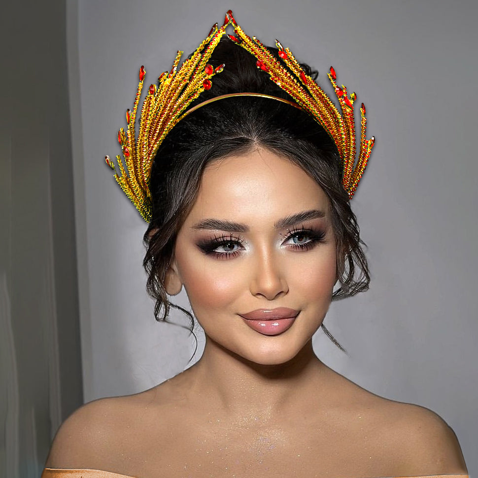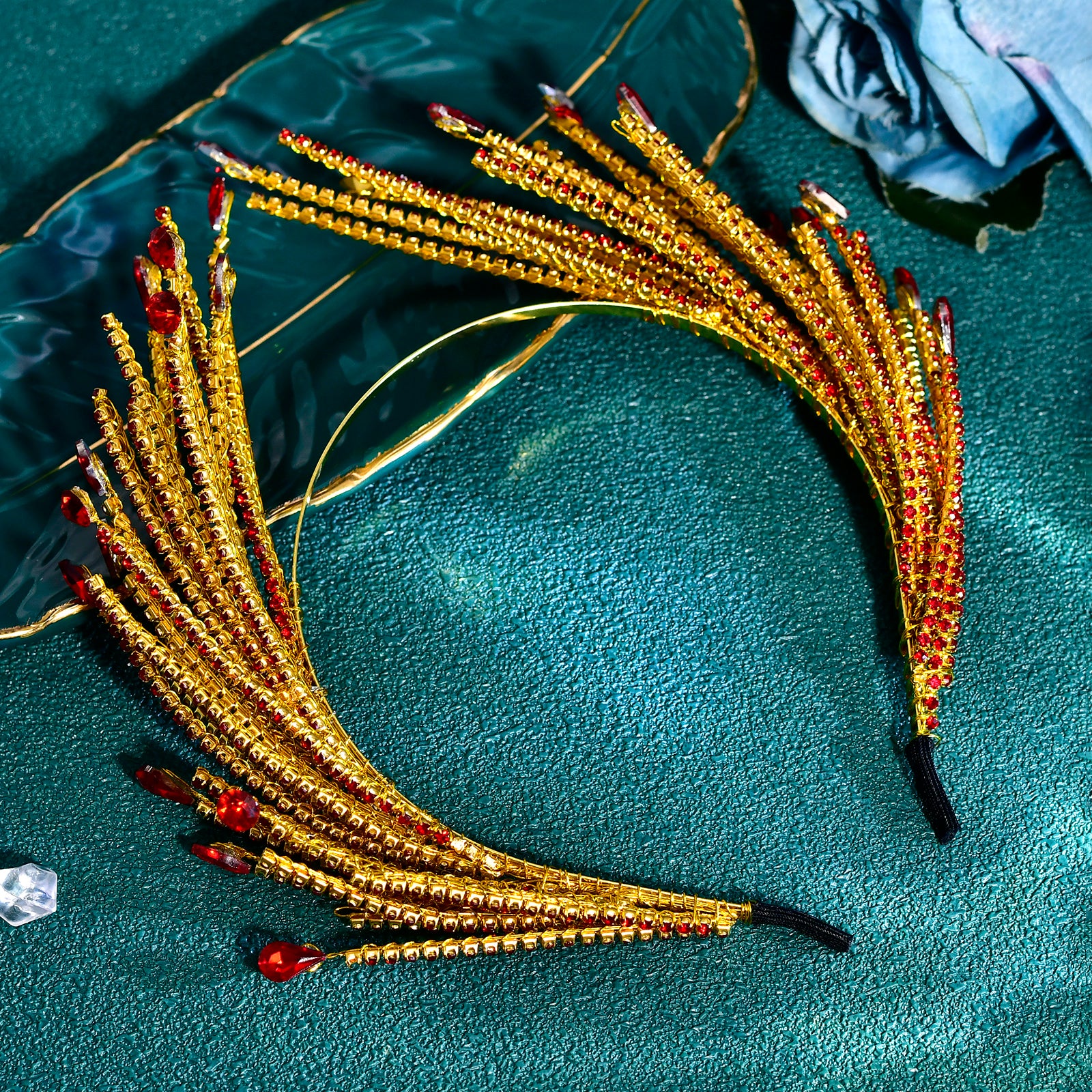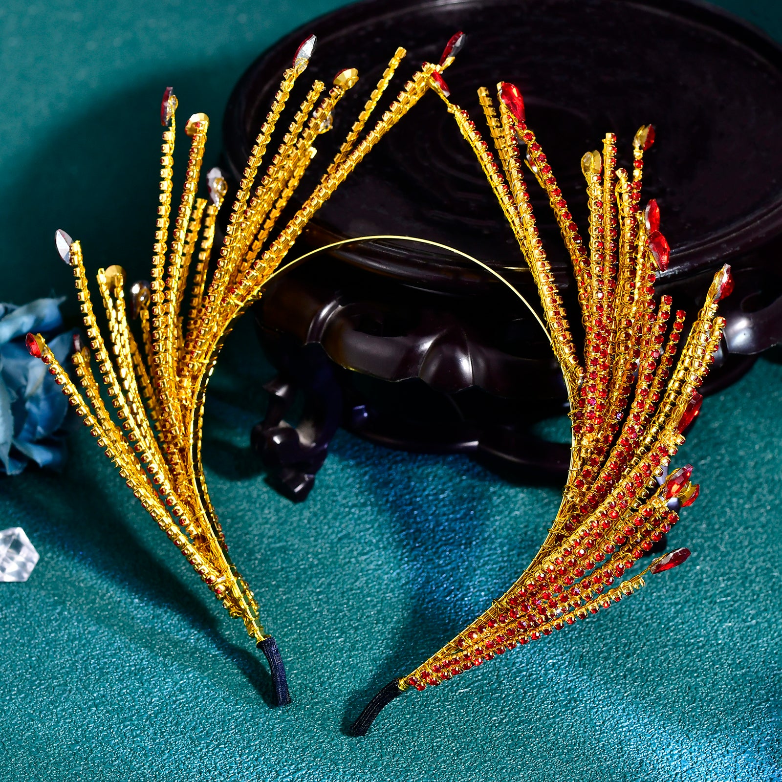BRIDELLA BHP849 Red Rhinestone Hair Hoop Bride Hairbands Wedding Party Crown Bridal Tiara Vintage Hair Accessories Banquet Headband