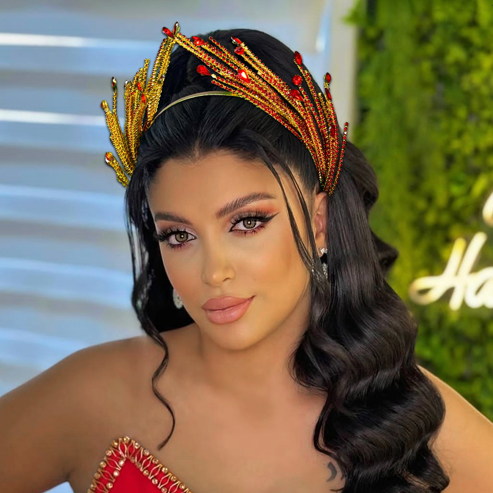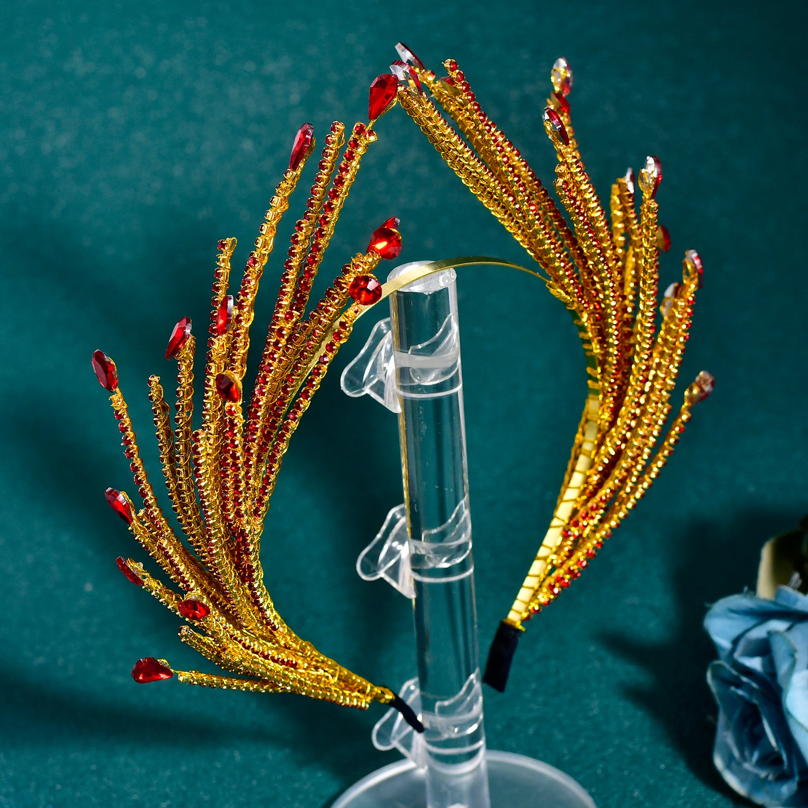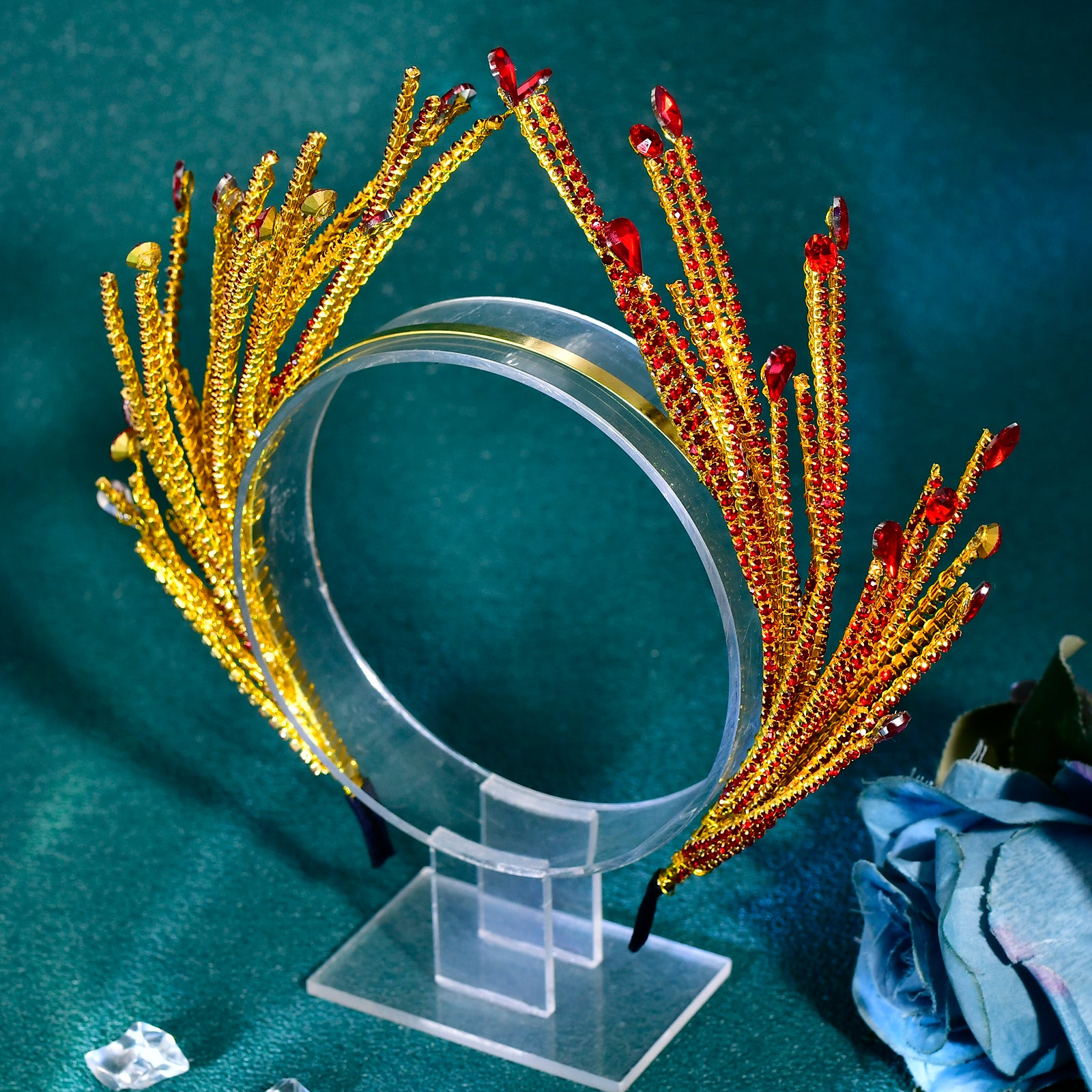 BRIDELLA BHP849 Red Rhinestone Hair Hoop Bride Hairbands Wedding Party Crown Bridal Tiara Vintage Hair Accessories Banquet Headband