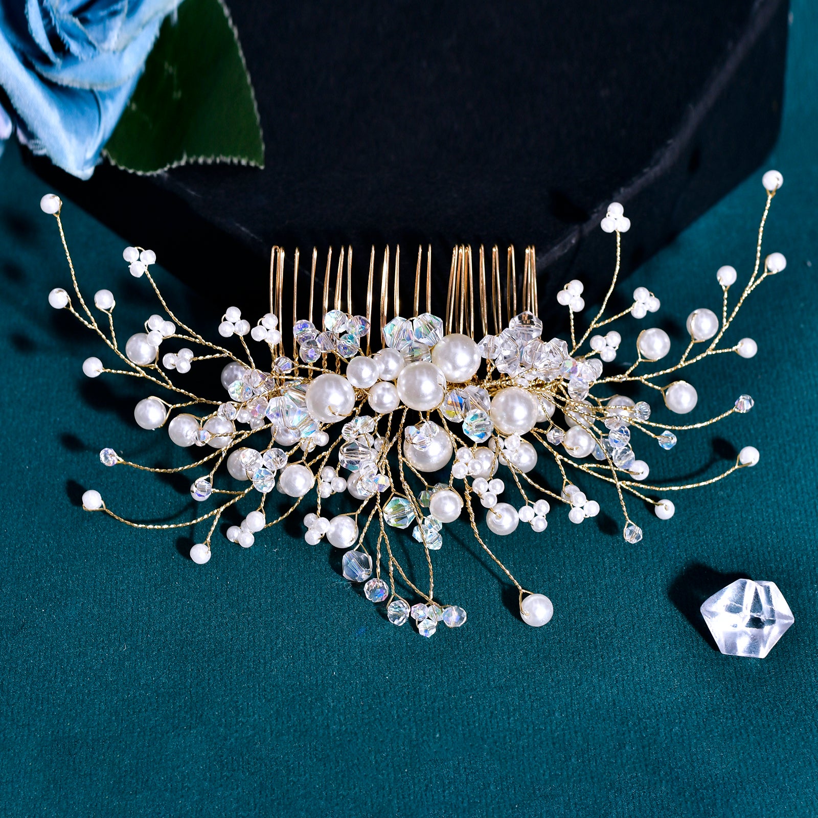 BRIDELLA BHP878 Bride Hair Comb Bridesmaid Headdress Wedding Shining Hair Ornaments Fashion Headwear Pearl Crystal Headpiece