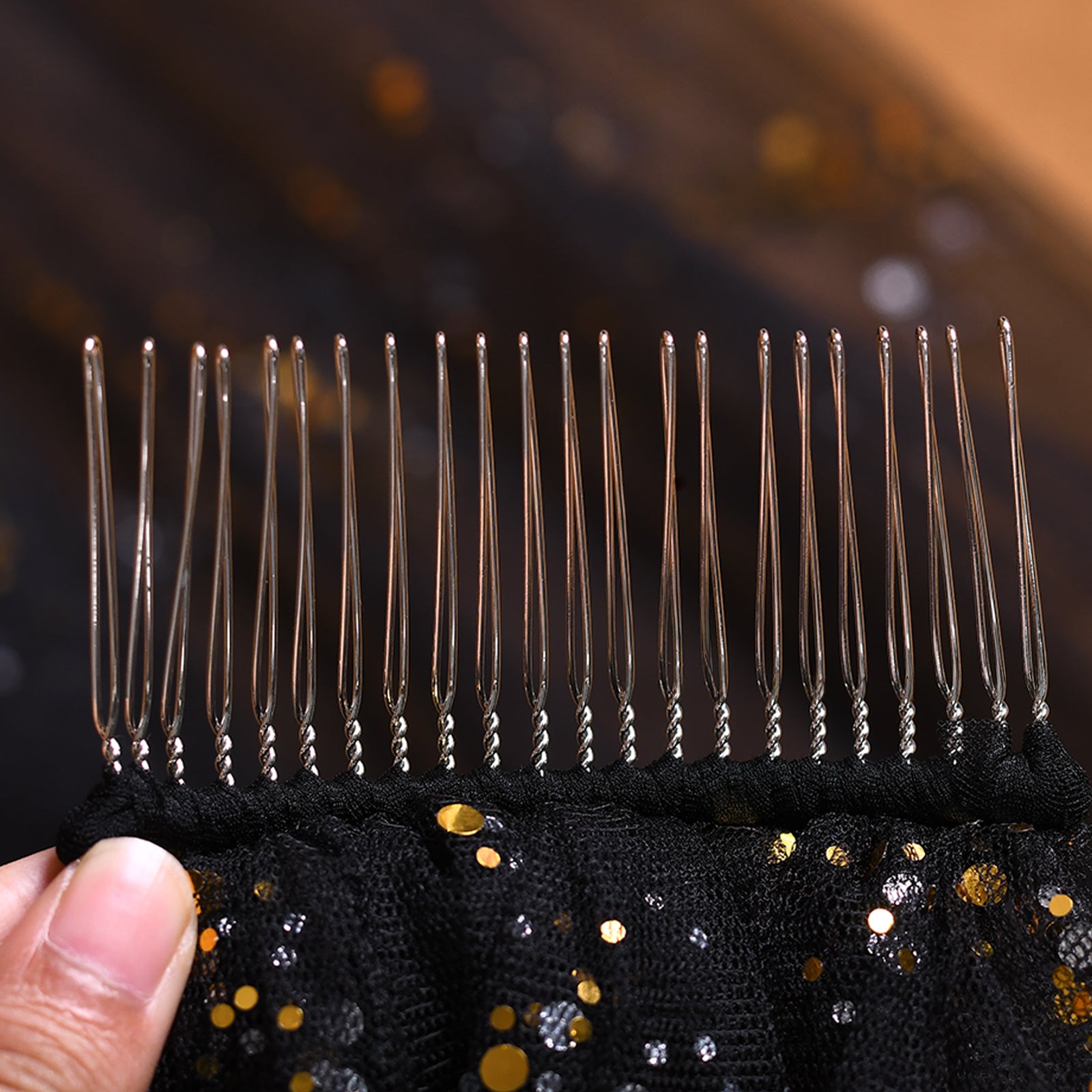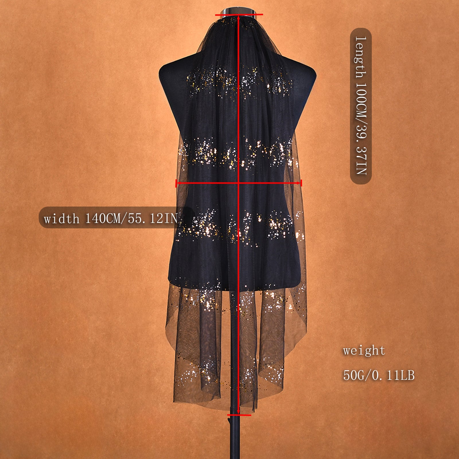BRIDELLA BM106 1 Tier Black Bridal Veil With Sequins Decoration 1-Meter-Long Wedding Veil With Comb Shiny Retro Veil Suitable For Weddings Parties Halloween