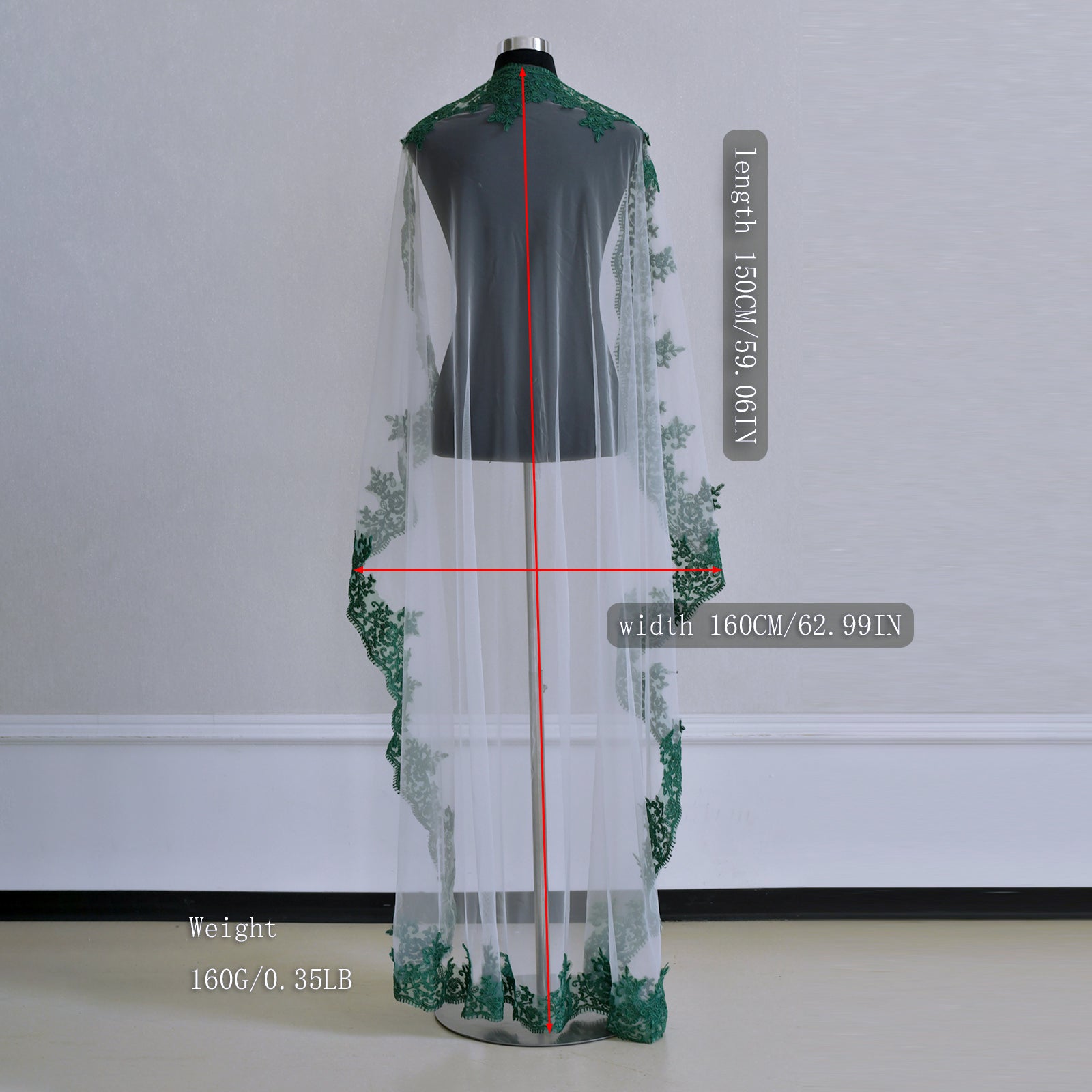 BRIDELLA BM112 Gentle Lace Bridal Veil Vintage Green Embroidery Edge Wedding Veil Elegant Bridal Lace Veil Tulle Wedding Accessories (No Comb)