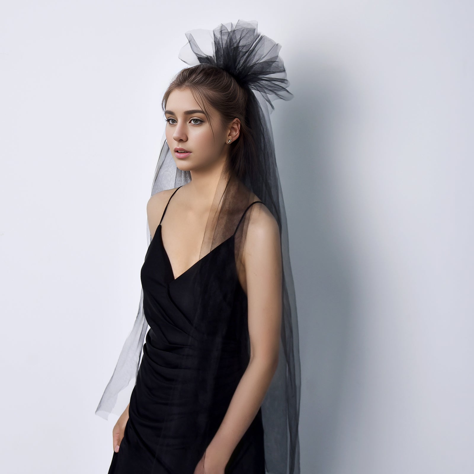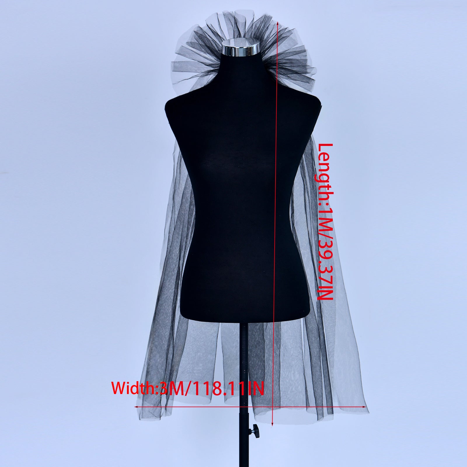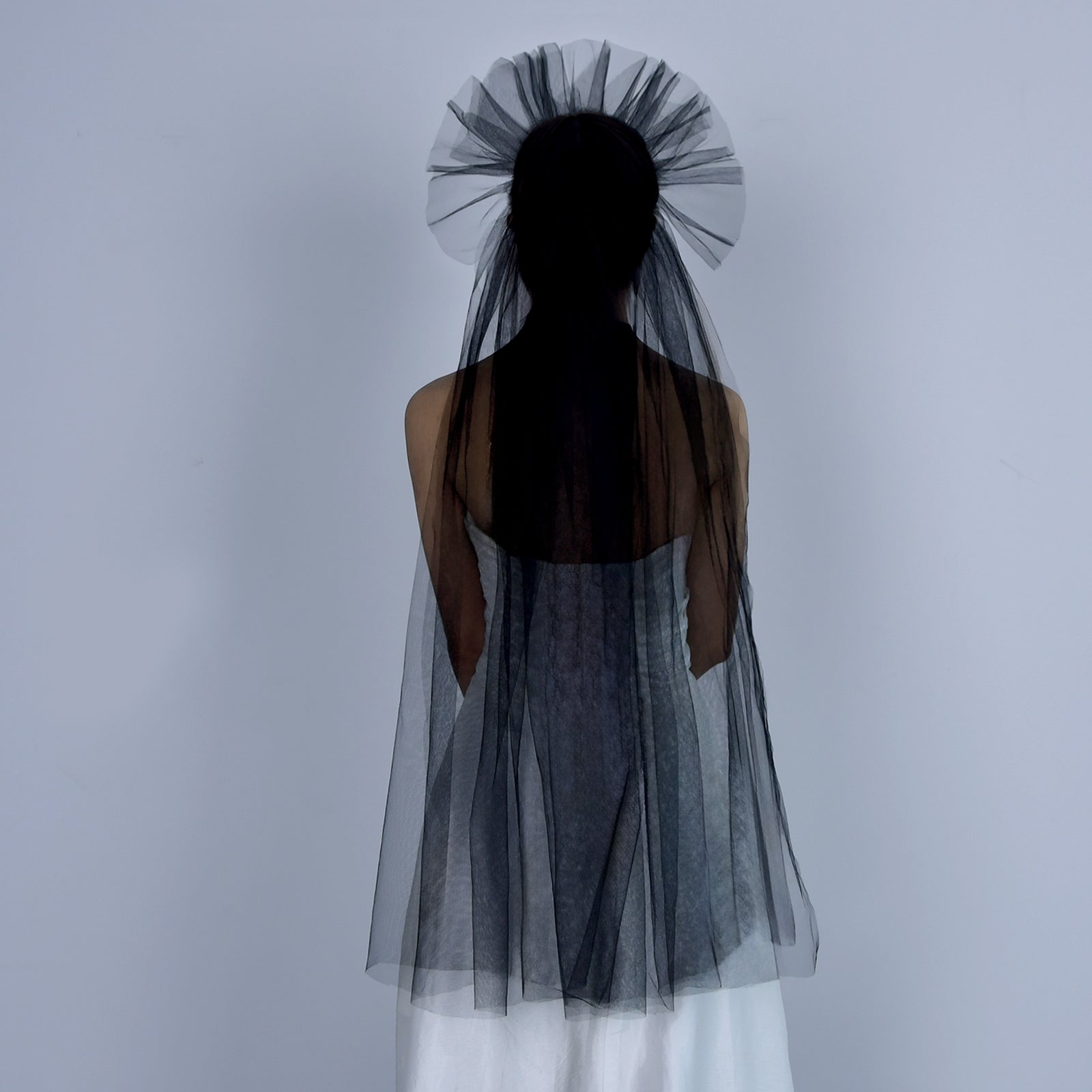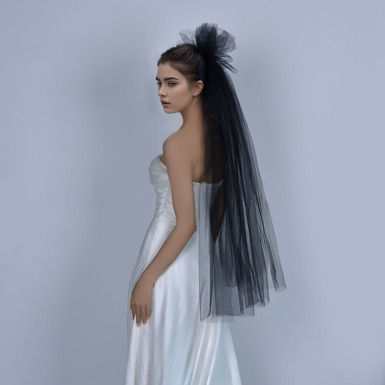 BRIDELLA BM125 Vintage Black Bridal Veil Classic Single-Layer Gothic Wedding Veil with Comb Exaggerated Flower Shaped Wedding Dress Accessories Halloween Cos Headwear