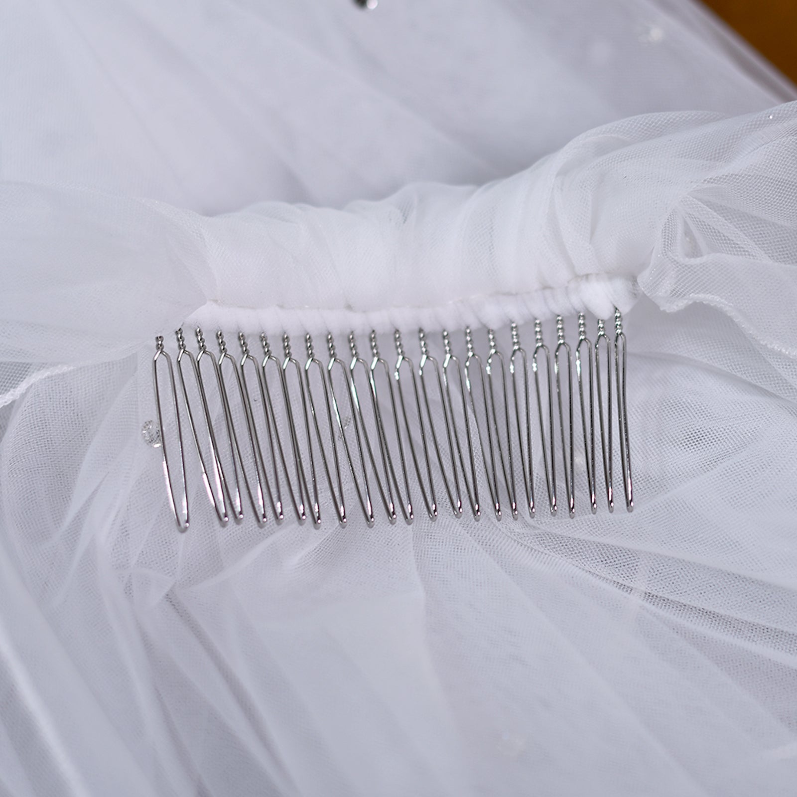 BRIDELLA BM128 Elegant Single-Layer Rhinestone Bridal Veil Simple White Edge Wedding Veil with Comb Romantic Rhinestone Veil Nylon Wedding Accessories Suitable for Bridal Weddings
