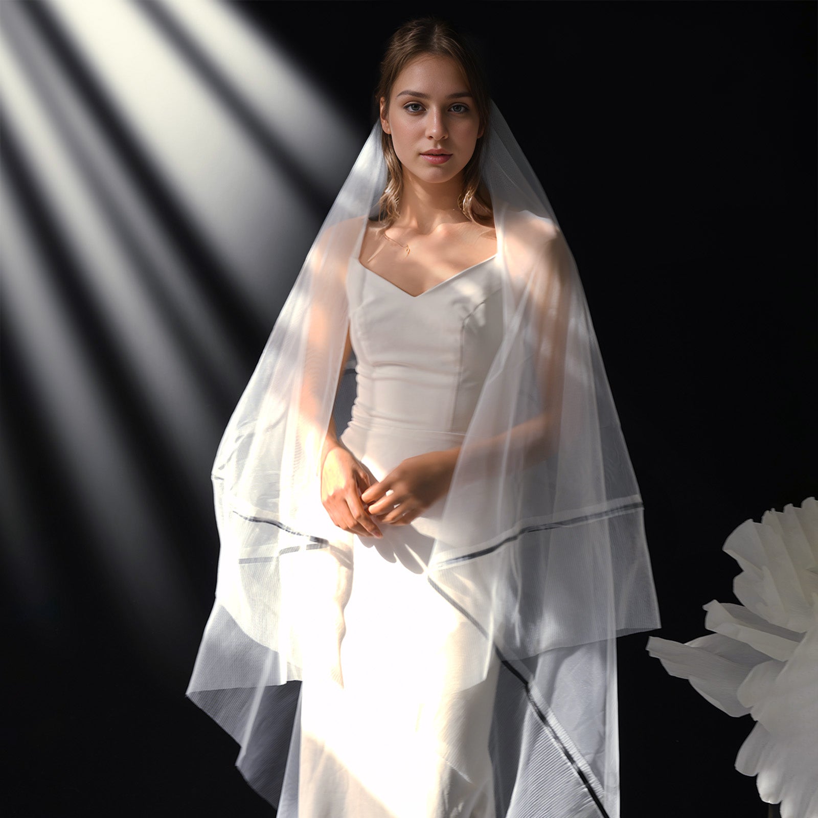 BRIDELLA BM148 1 Piece Long Trailing Bridal Veil With Comb Satin Line Decoration Simple And Versatile Suitable For Women's Wedding Dress Accessories