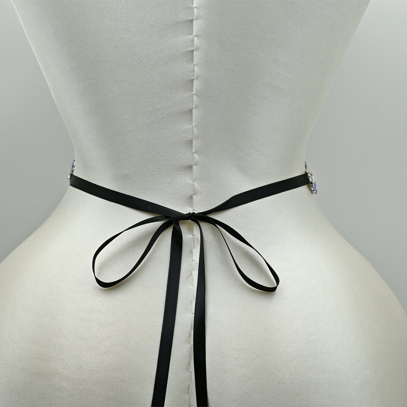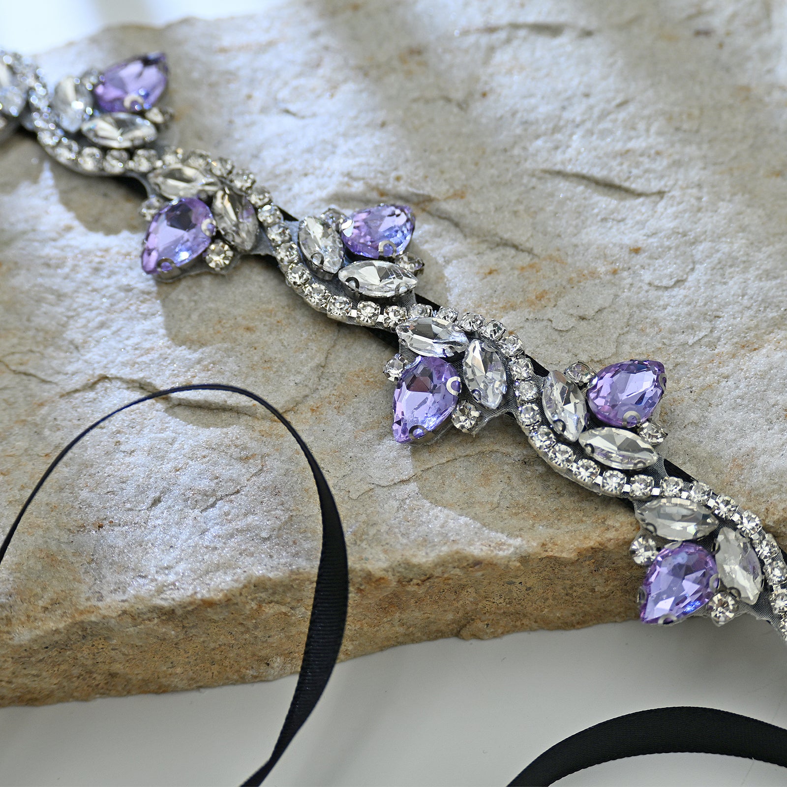 Bridella BS211LA- Black ribbon Lavender Rhinestone Belt