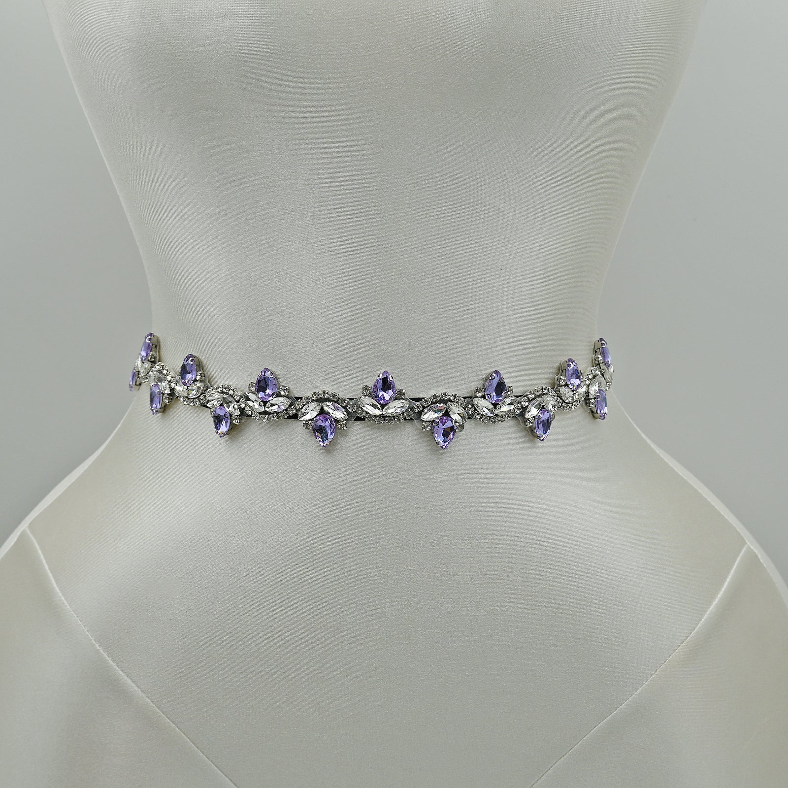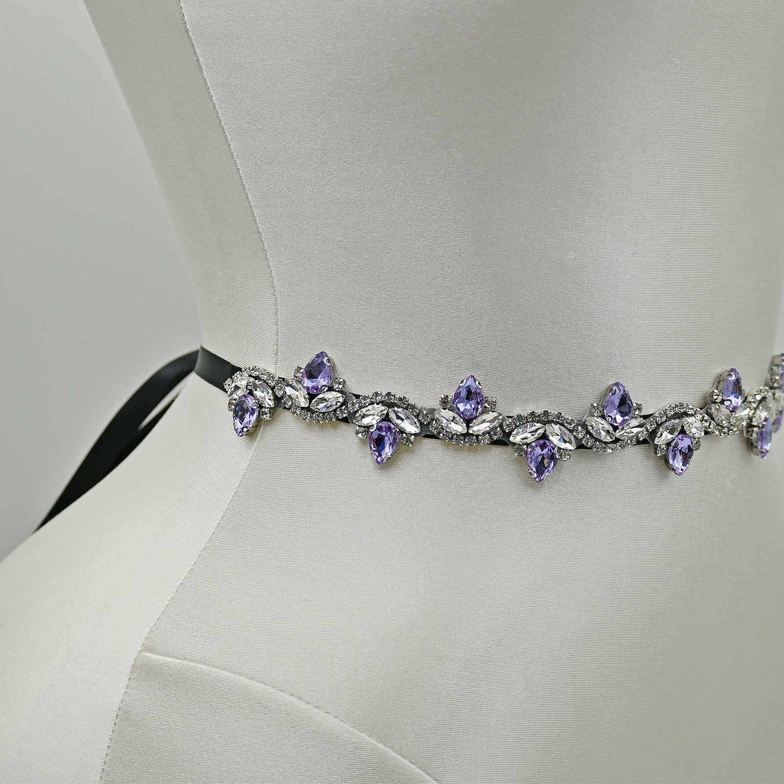 Elevate your look with this lavender rhinestone belt, perfect for weddings, proms, and special occasions.