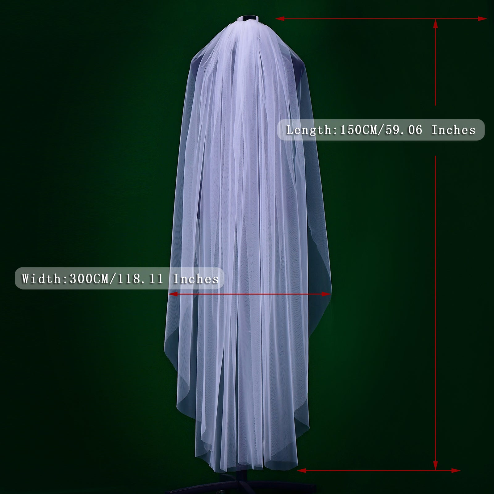 BRIDELLA BM92 Cathedral Length Wedding Bridal Veil Elegant Long Plain Wedding Veil With Comb