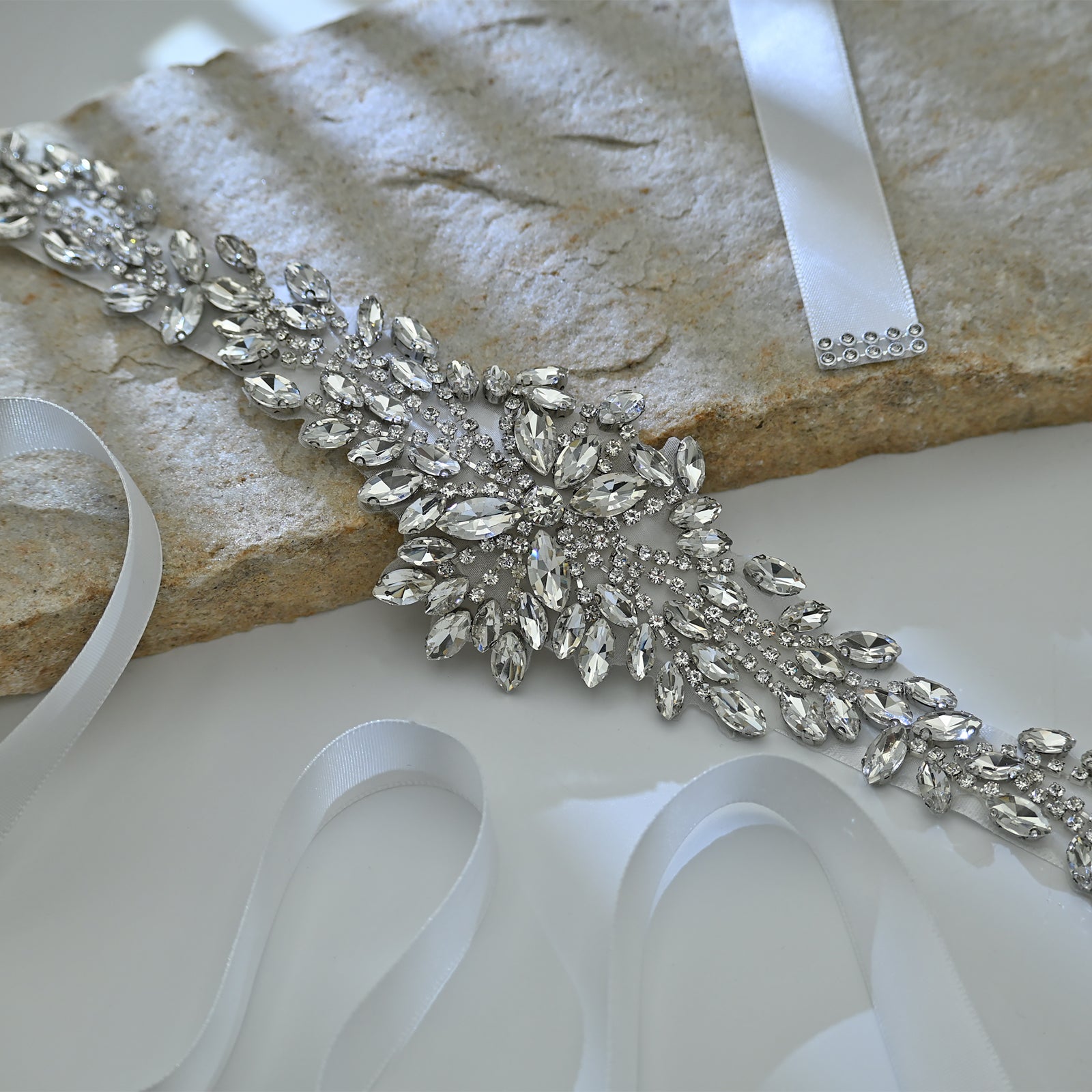 Bridella BS11-White Silver Rhinestone Belt