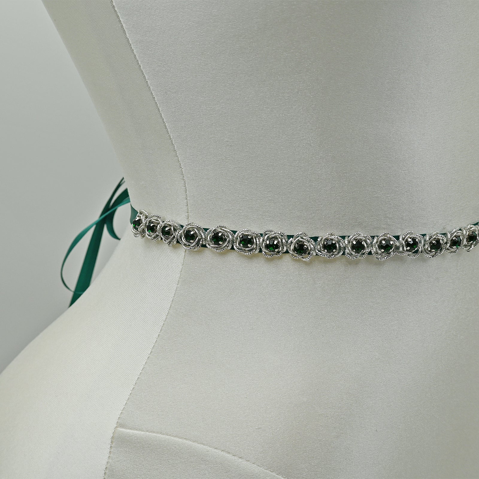 Elevate your look with this green rhinestone belt, perfect for weddings, proms, and special occasions.