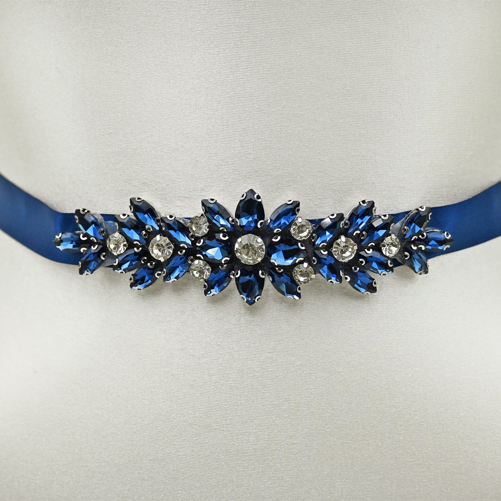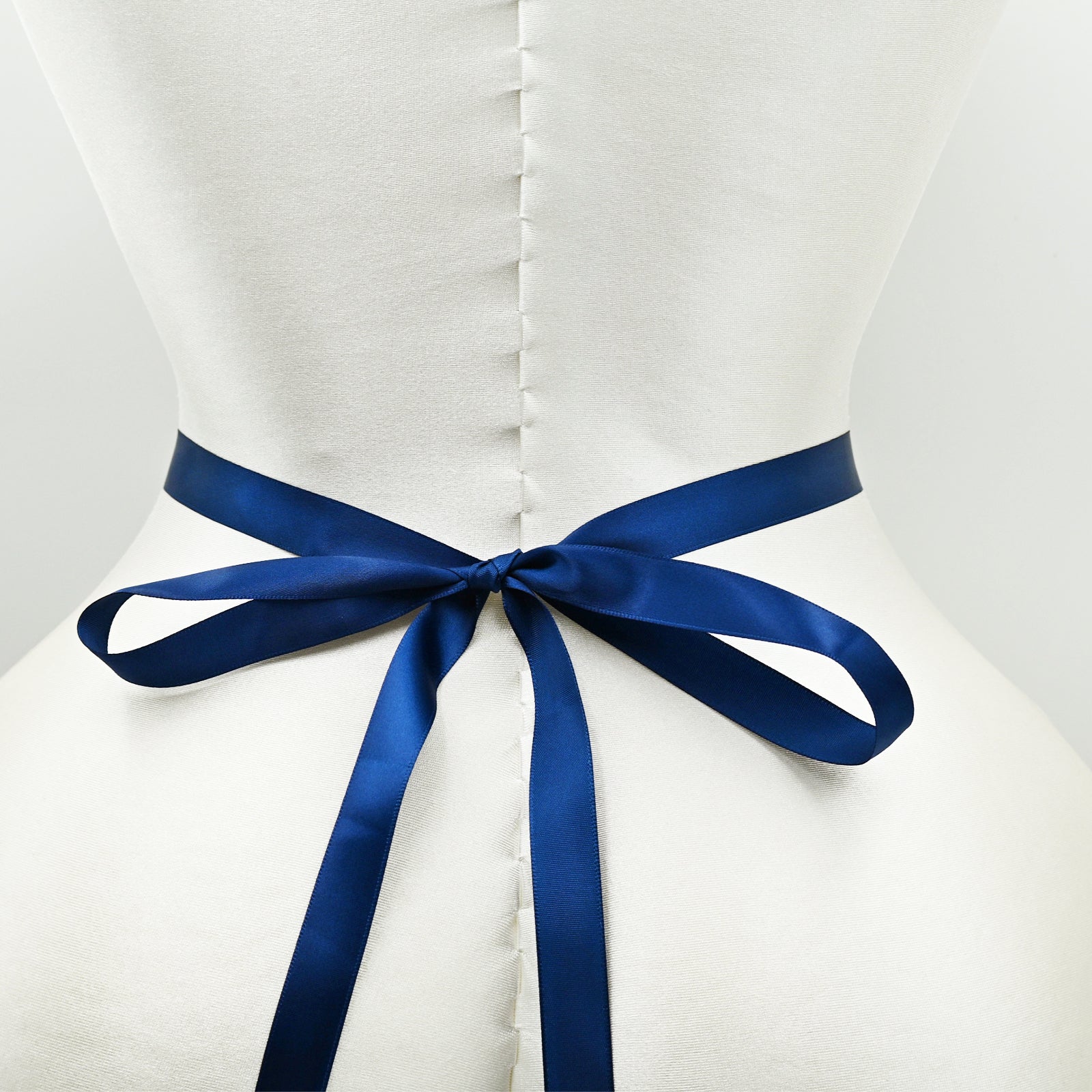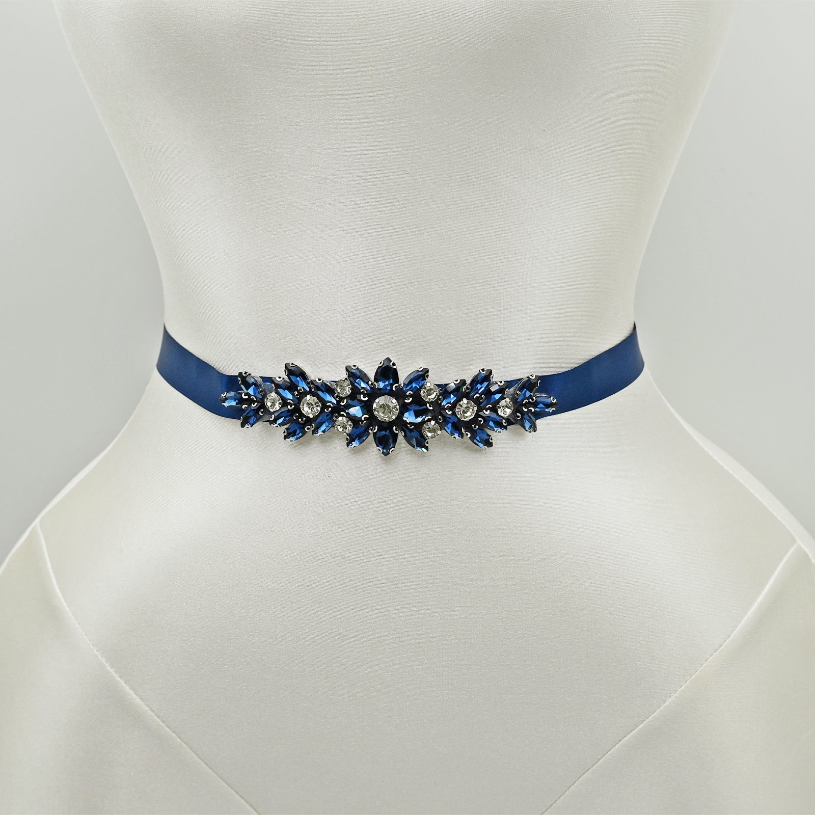 Navy Blue Rhinestone Bridal Sash Ribbon Wedding Dress Belt – Bridella BS243ML