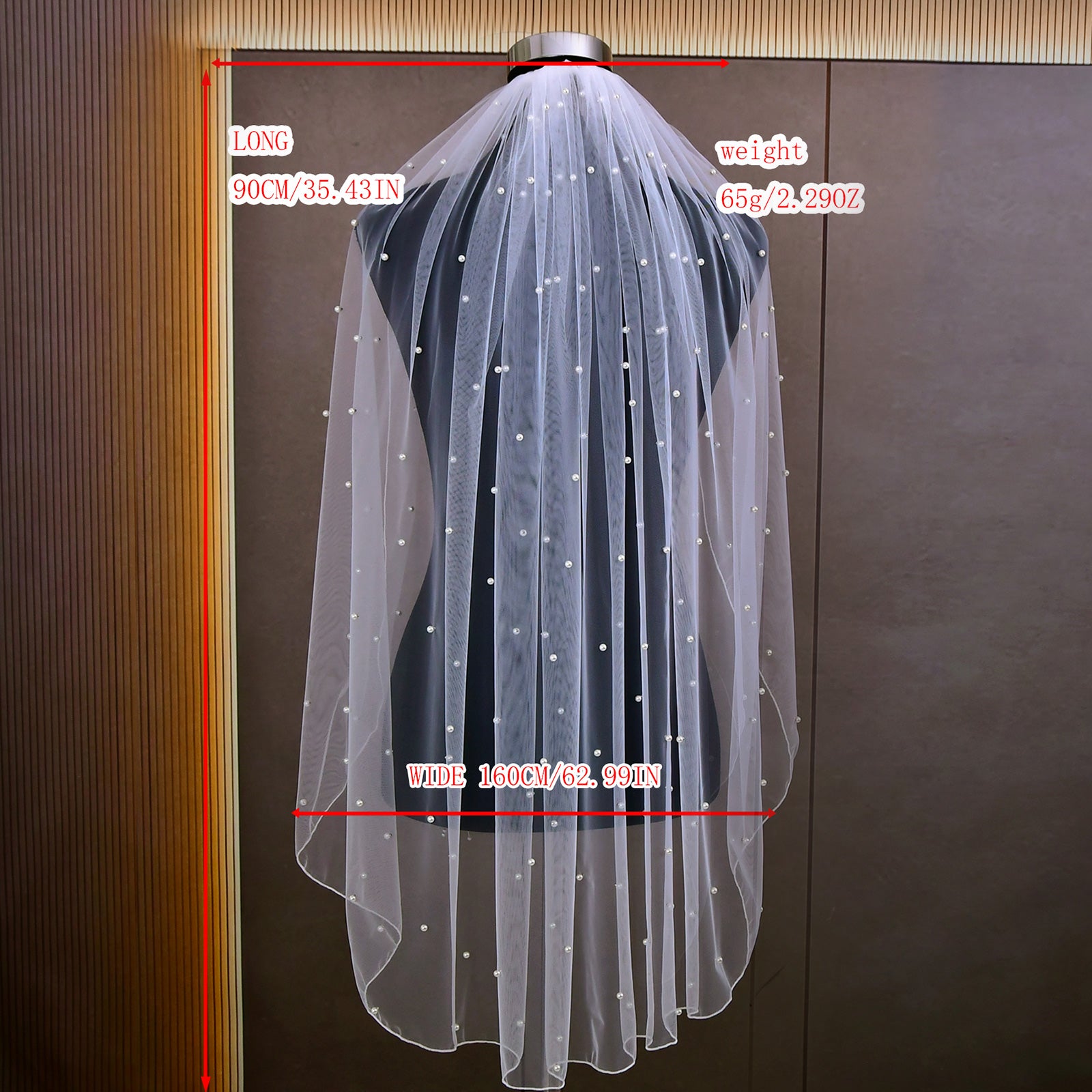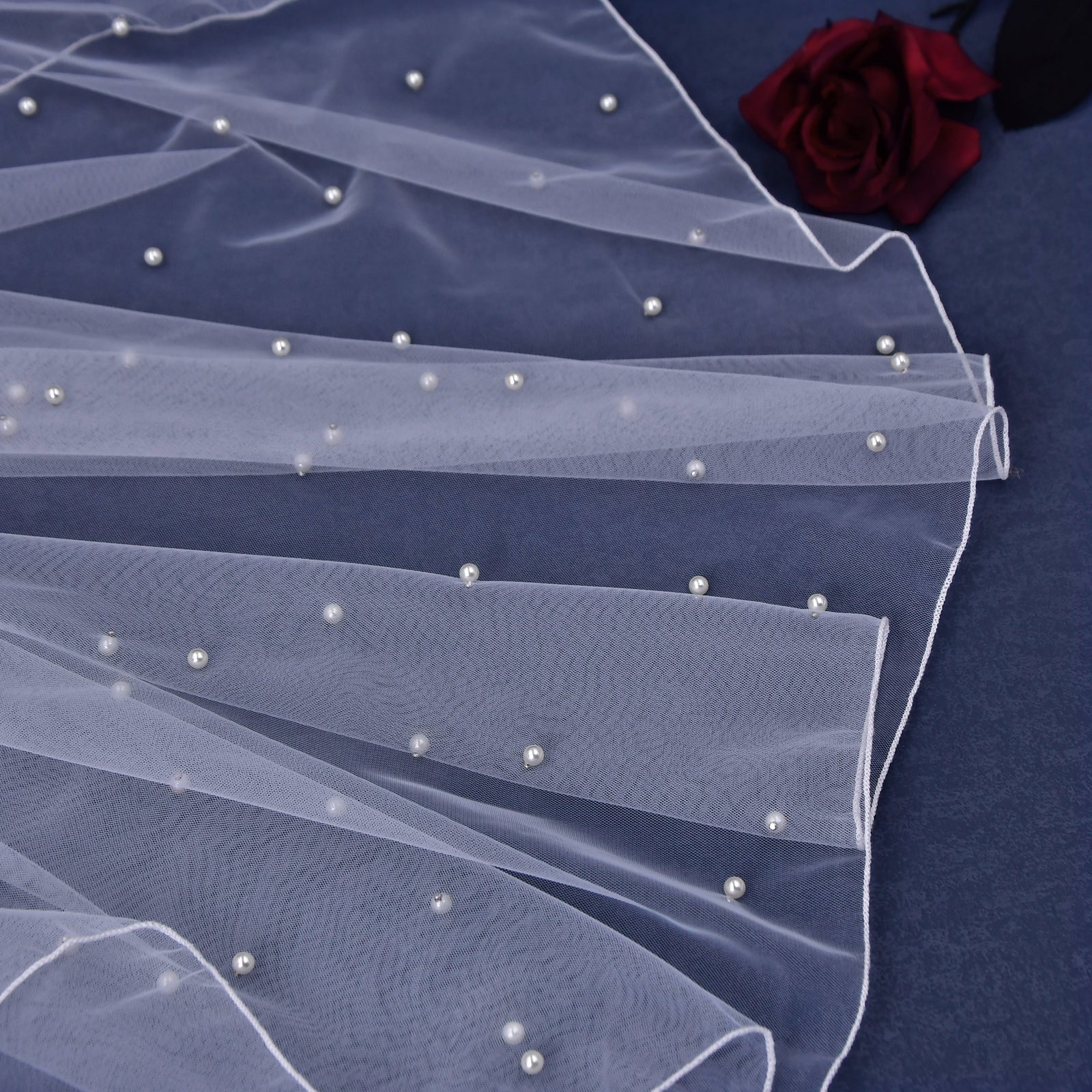 BRIDELLA BV06 Short Lock Edge Pearl Beaded Veil Single Layer With Hair Comb Bride Wedding Veil Accessories