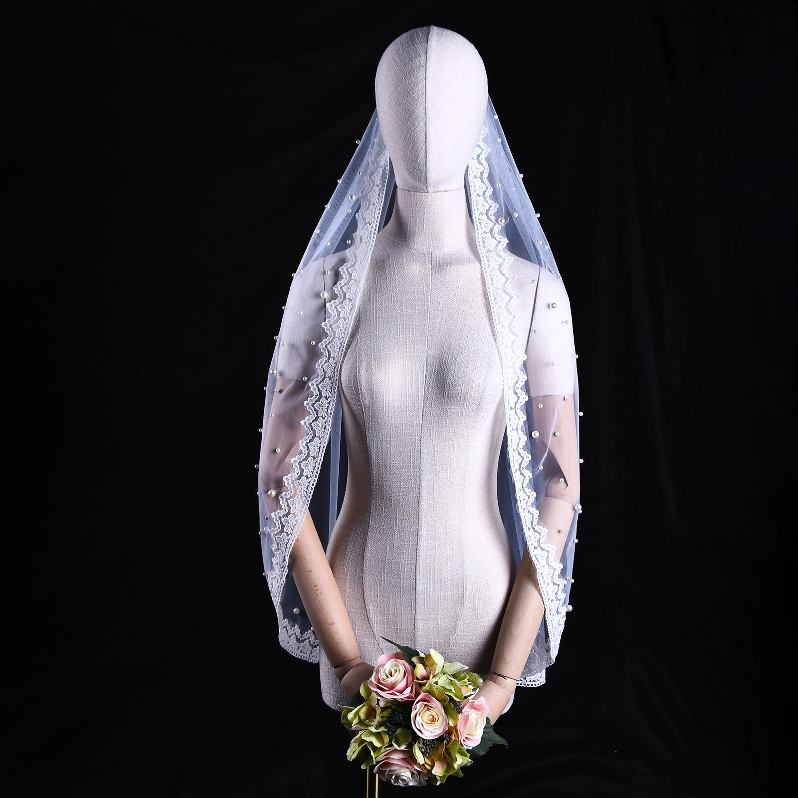 Material Composition: Nylon mesh, Lace, Resin Pearls