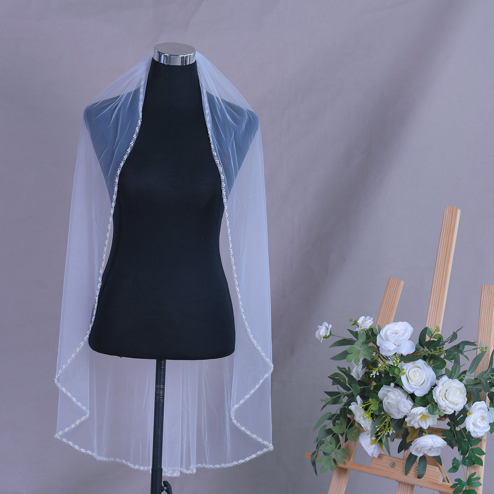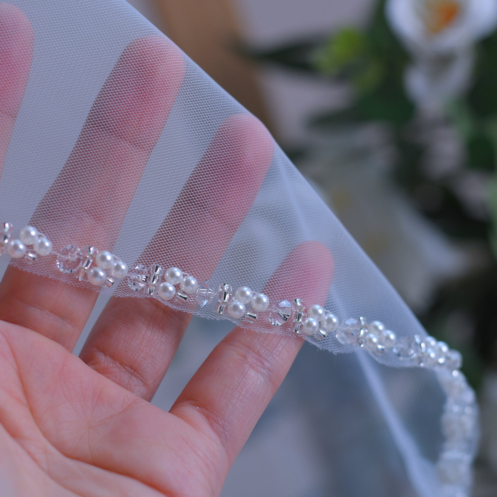 BRIDELLA BV175 Fashion Bridal Exquisite Beaded Veil Single Layer Fingertip Length with Hair Comb Wedding Accessories