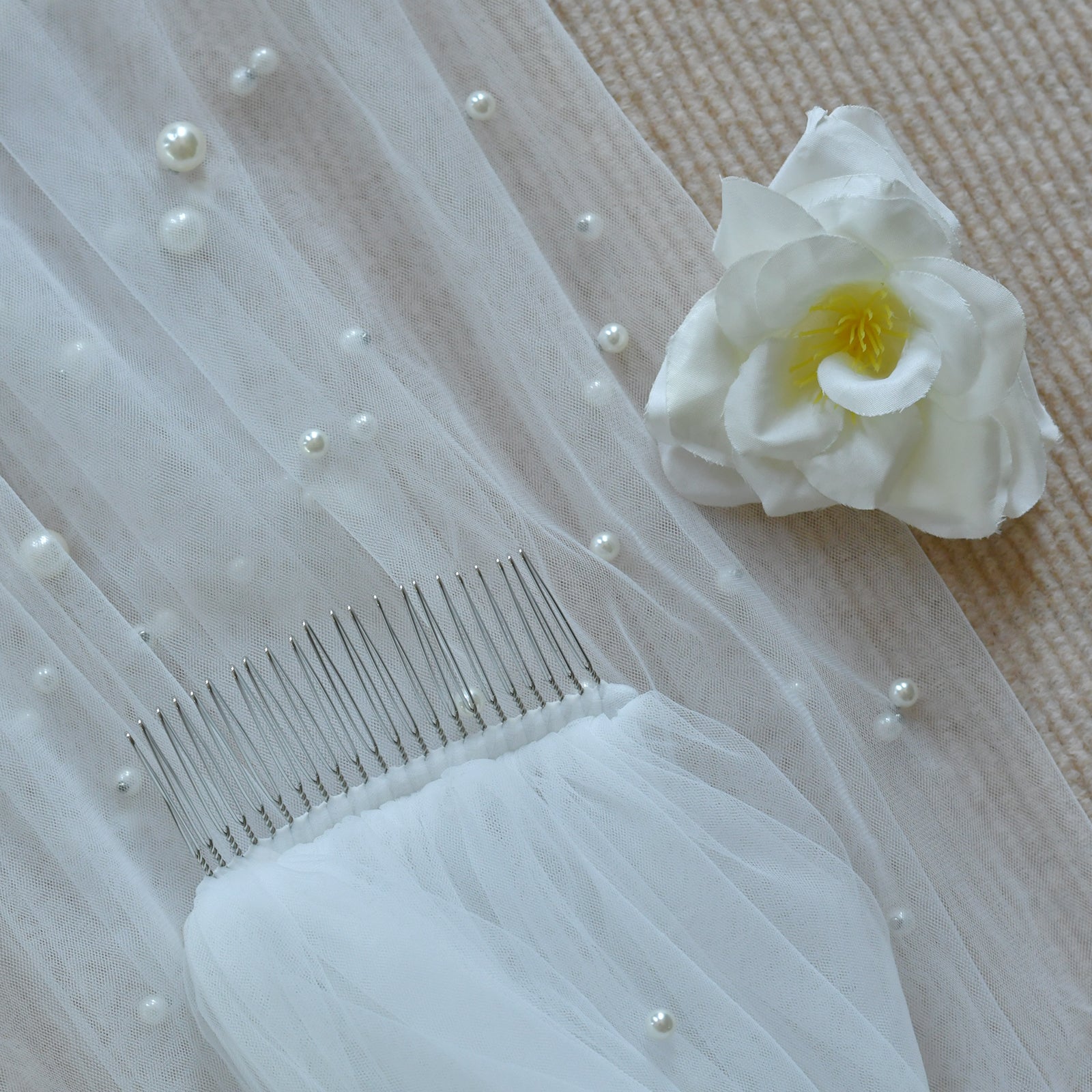 BRIDELLA BV176 1 Piece Single Layer Fingertip Length Artificial Pearl Bridal Veil Suitable For Wedding Registration Wedding Accessories Include Hair Comb