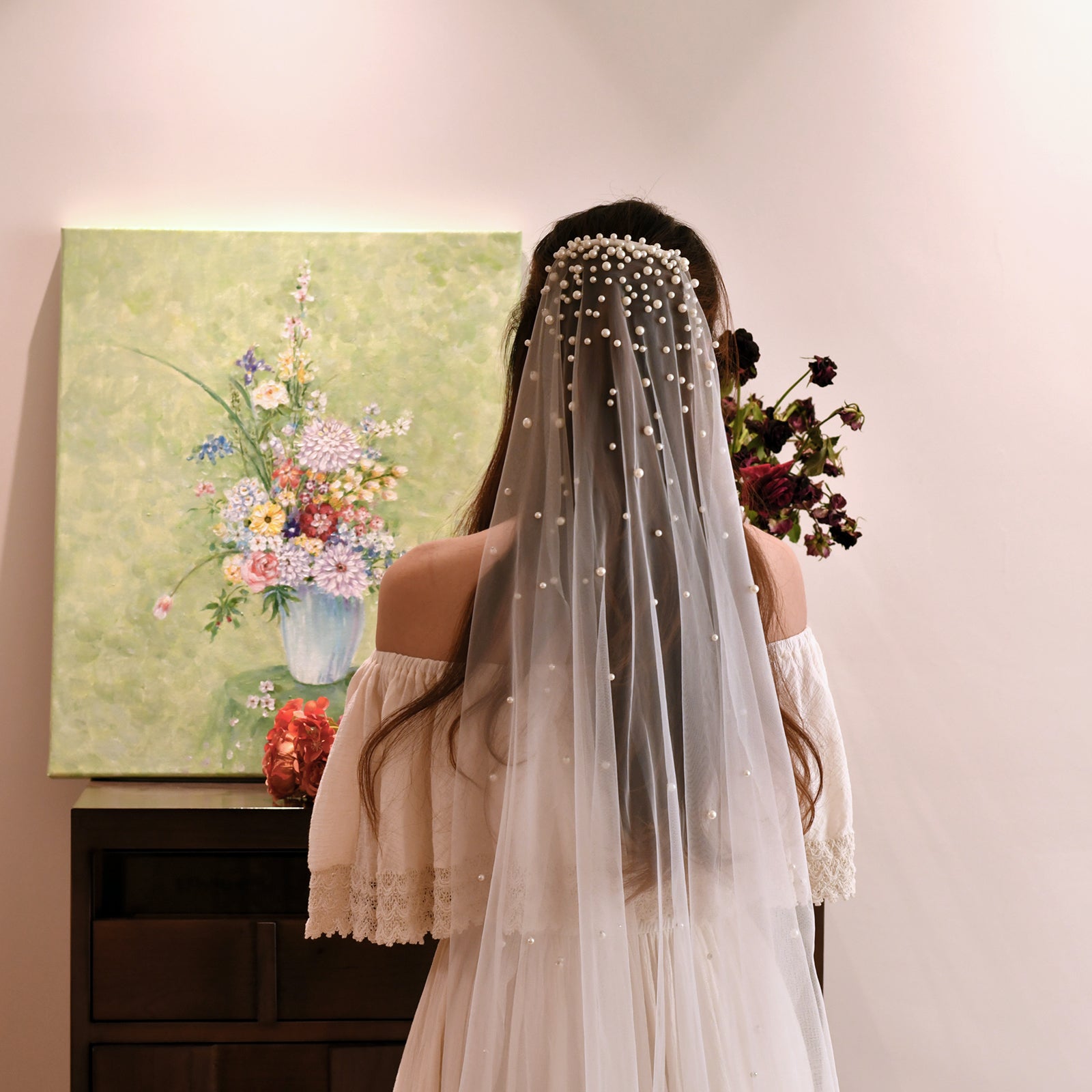 BRIDELLA BV180 1 Piece Single Layer Fingertip Length Artificial Pearl Bridal Veil Suitable For Wedding Registration Wedding Accessories Include Hair Comb