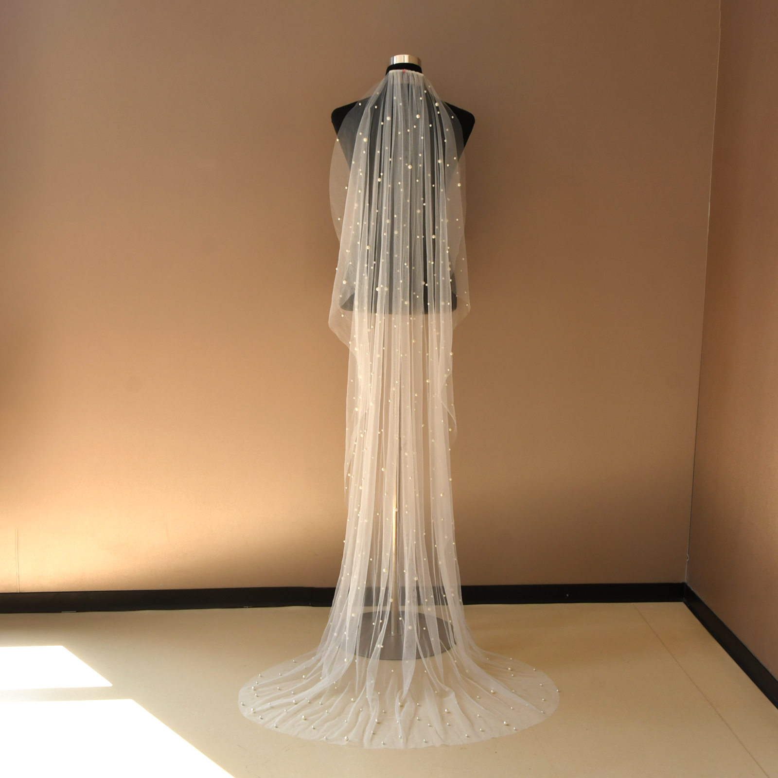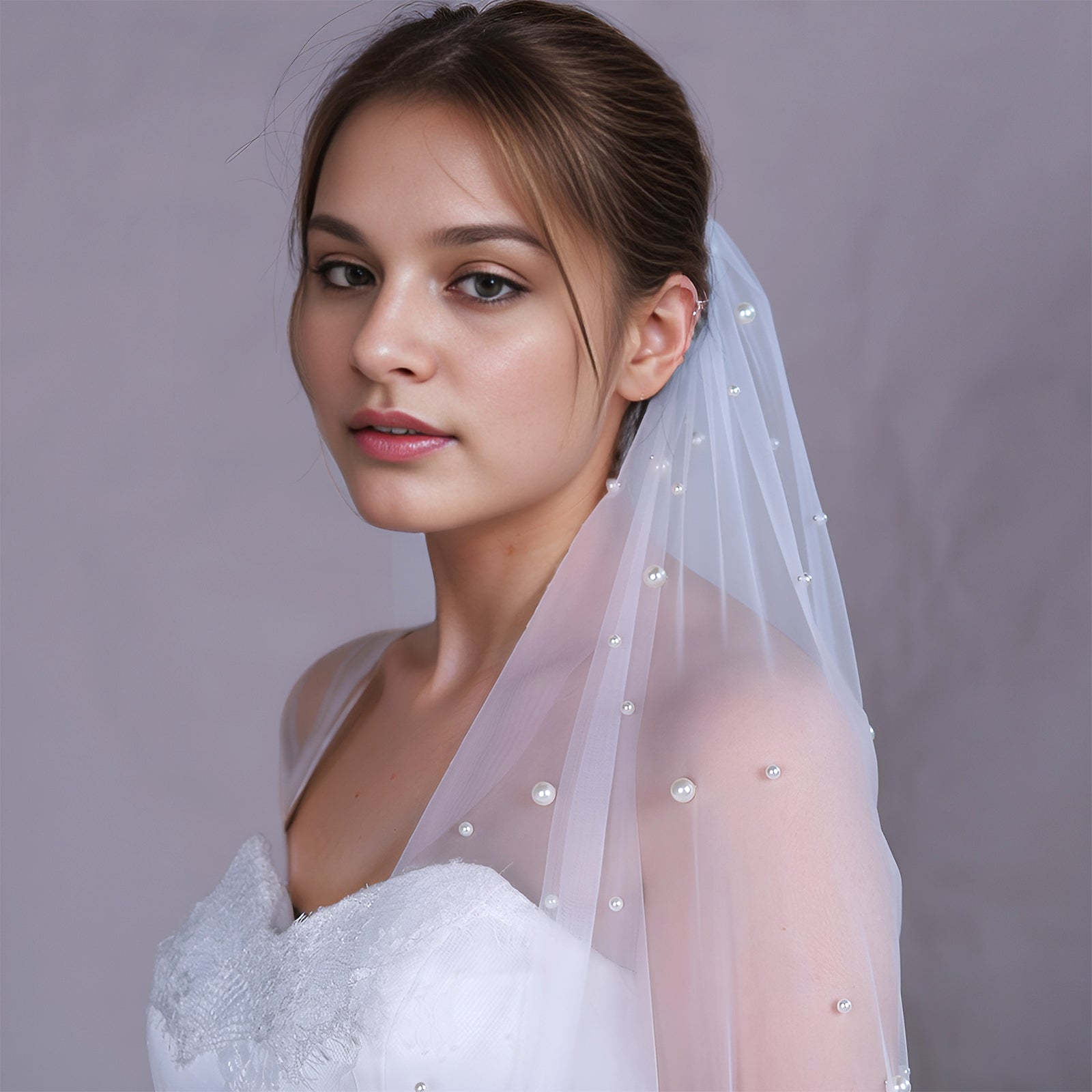 BRIDELLA BV182 Classic Style Pearl Veil Single Layer Church Length Outdoor Lawn Wedding Bridal Photography Veil