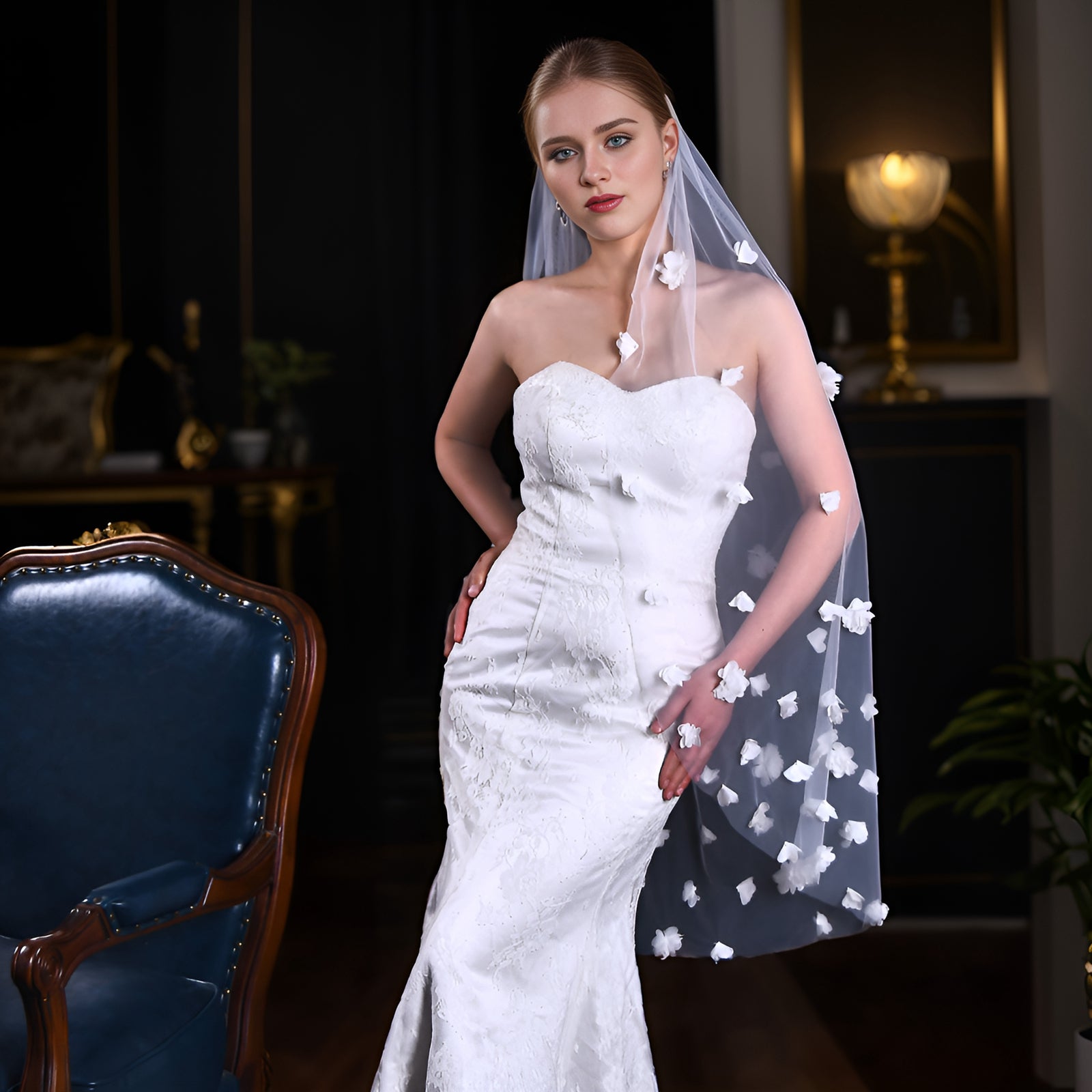 BRIDELLA BV20 Single Layer 3D Flower Veil Elegant Korean Bridal Wedding Veil Bridal Party Hair Accessories With Comb