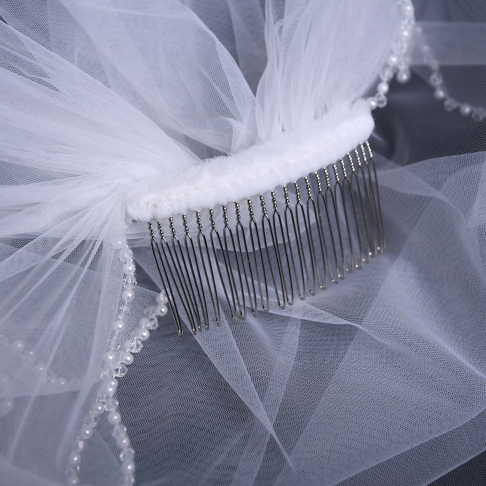 BRIDELLA BV34 Fashionable Fingertip Length Crystal Pearl Beaded Edge Single Layer Bridal Wedding Veil Suitable For Individual Dress