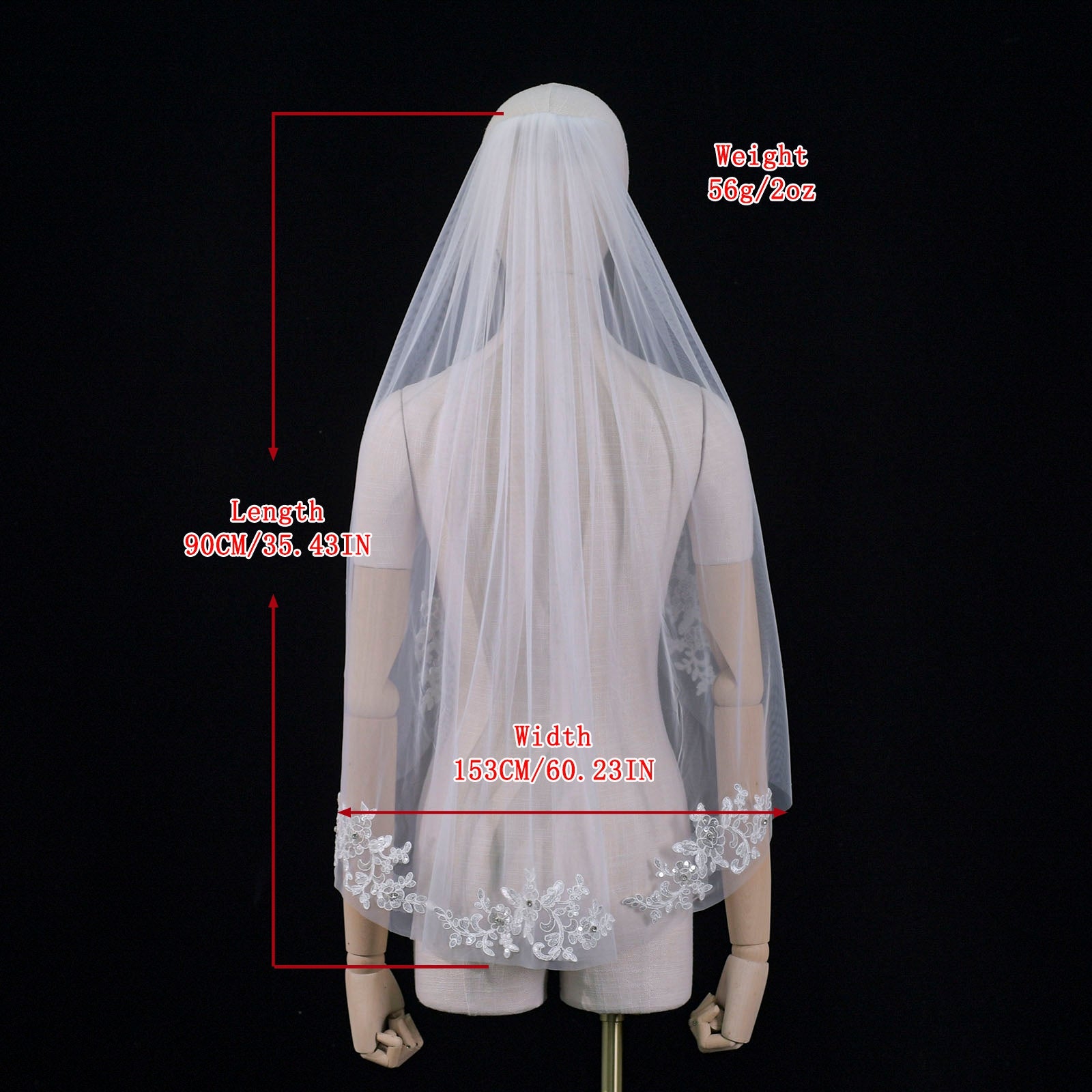 BRIDELLA BV49 Exquisite Bridal Lace Applique Short Veil Made Of Soft Mesh Material Pure Transparent Tulle
