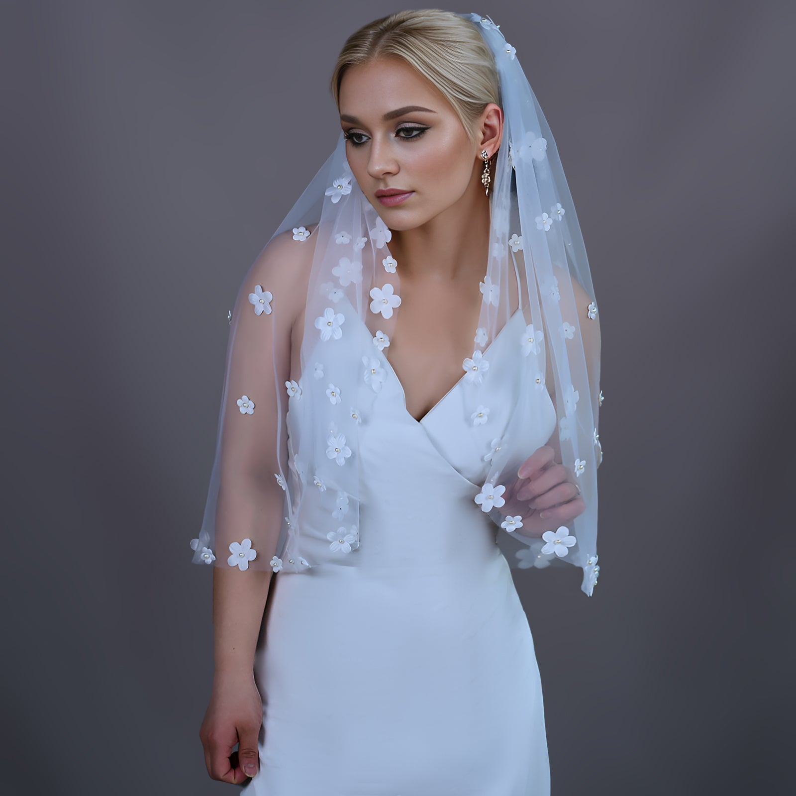 BRIDELLA BV80 Single-Layer Flower Decoration Bridal Wedding Veil Short Elbow-Length Light And Thin With Hair Comb Veil