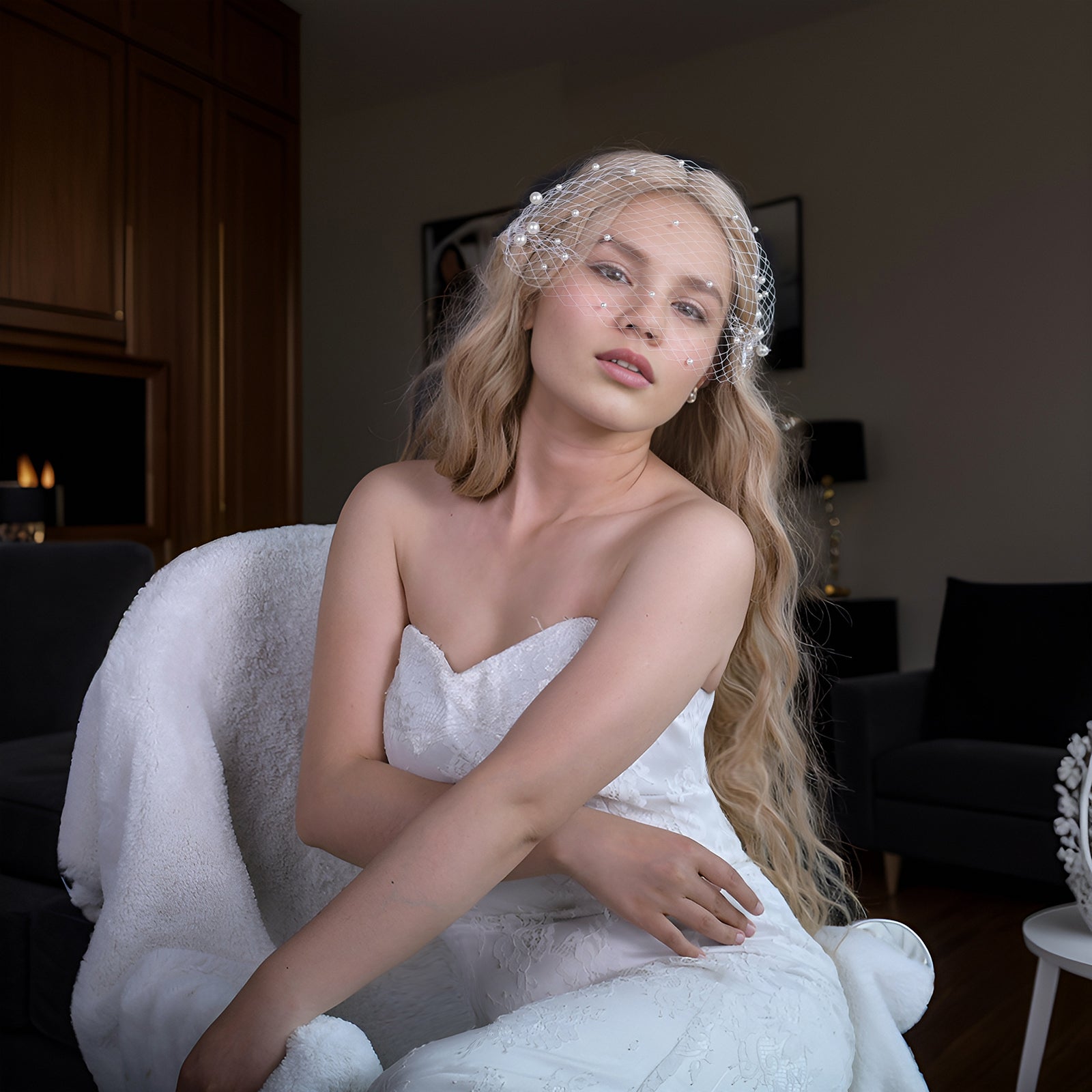 Material Composition: Nylon mesh, Pearls