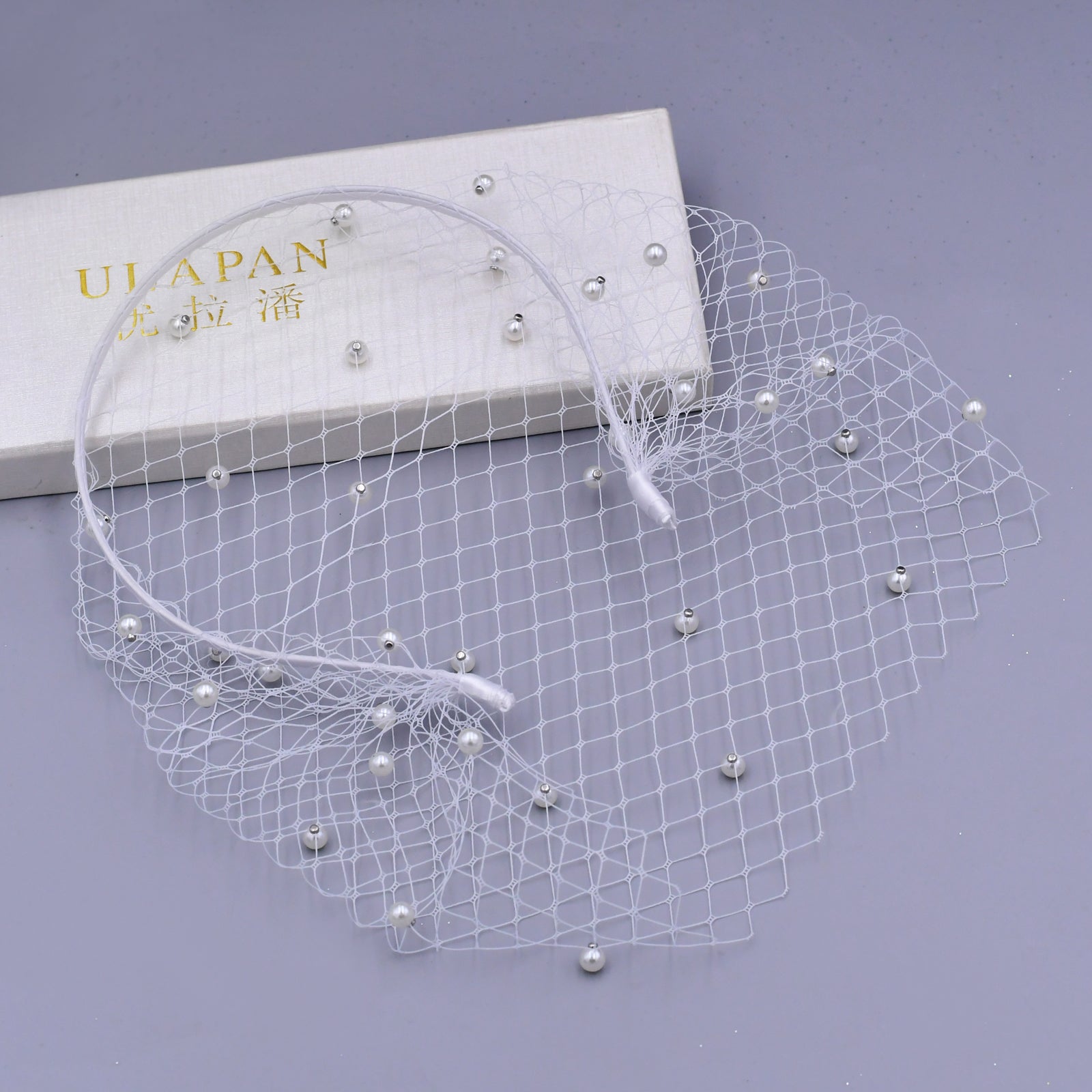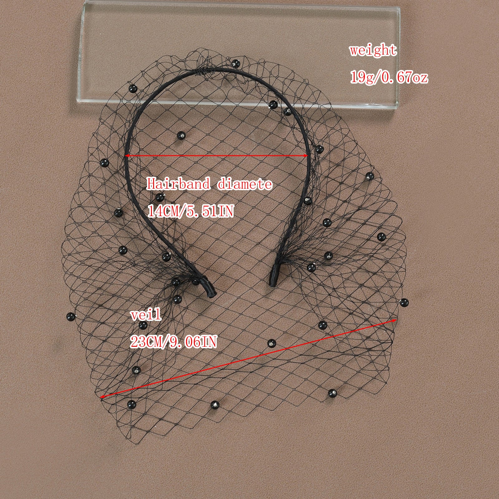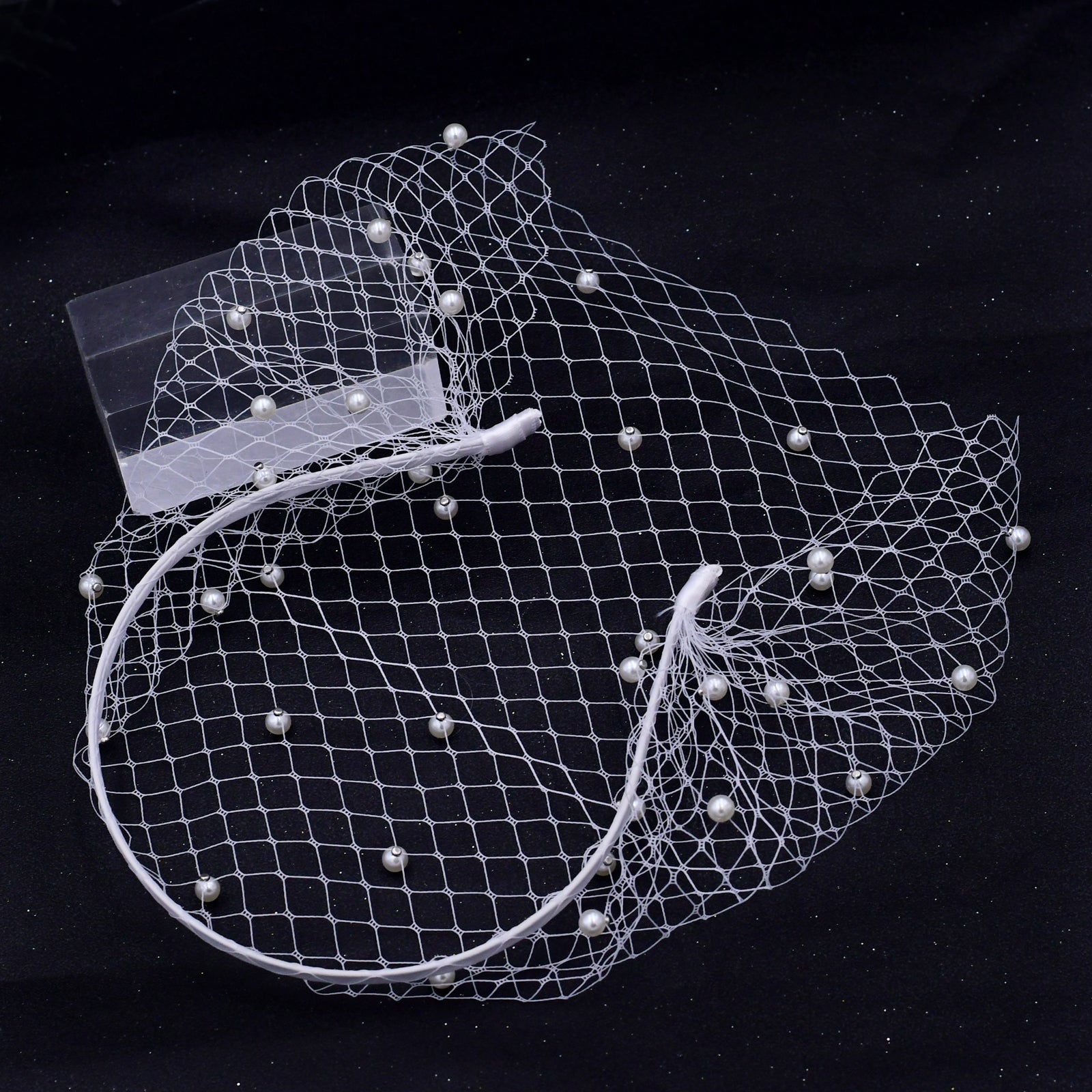 BRIDELLA BVA08 Fashion Women's Face Decoration Short Pearl Black Fishnet Bridal Birdcage Veil