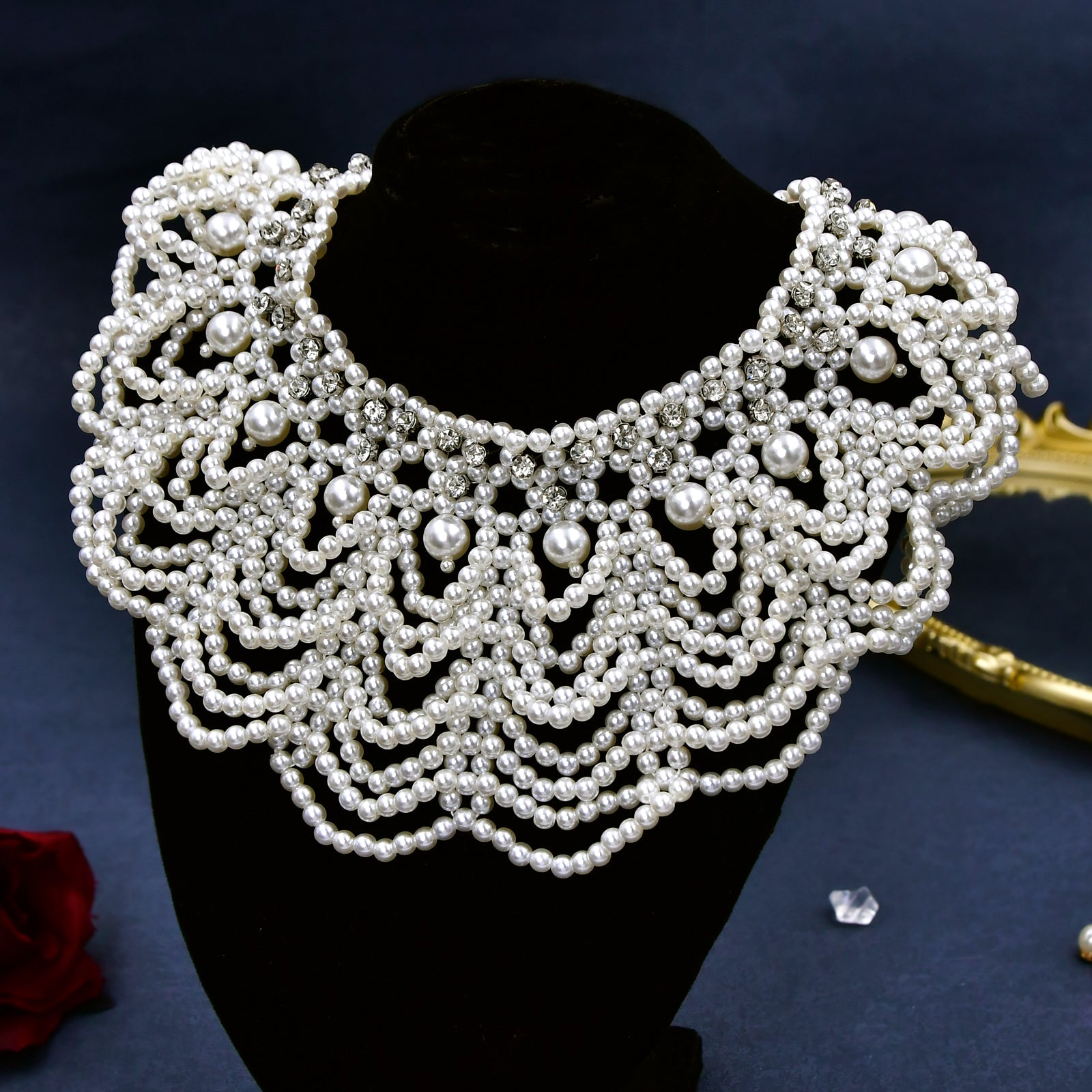 BRIDELLA BVG05 White Pearl Fashion Women's Necklace Handmade Beaded Short Body Chain Bridal Jewelry