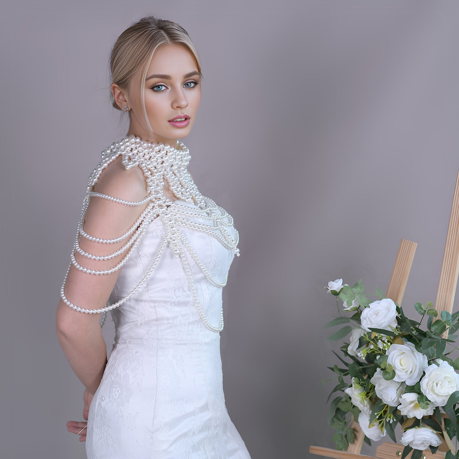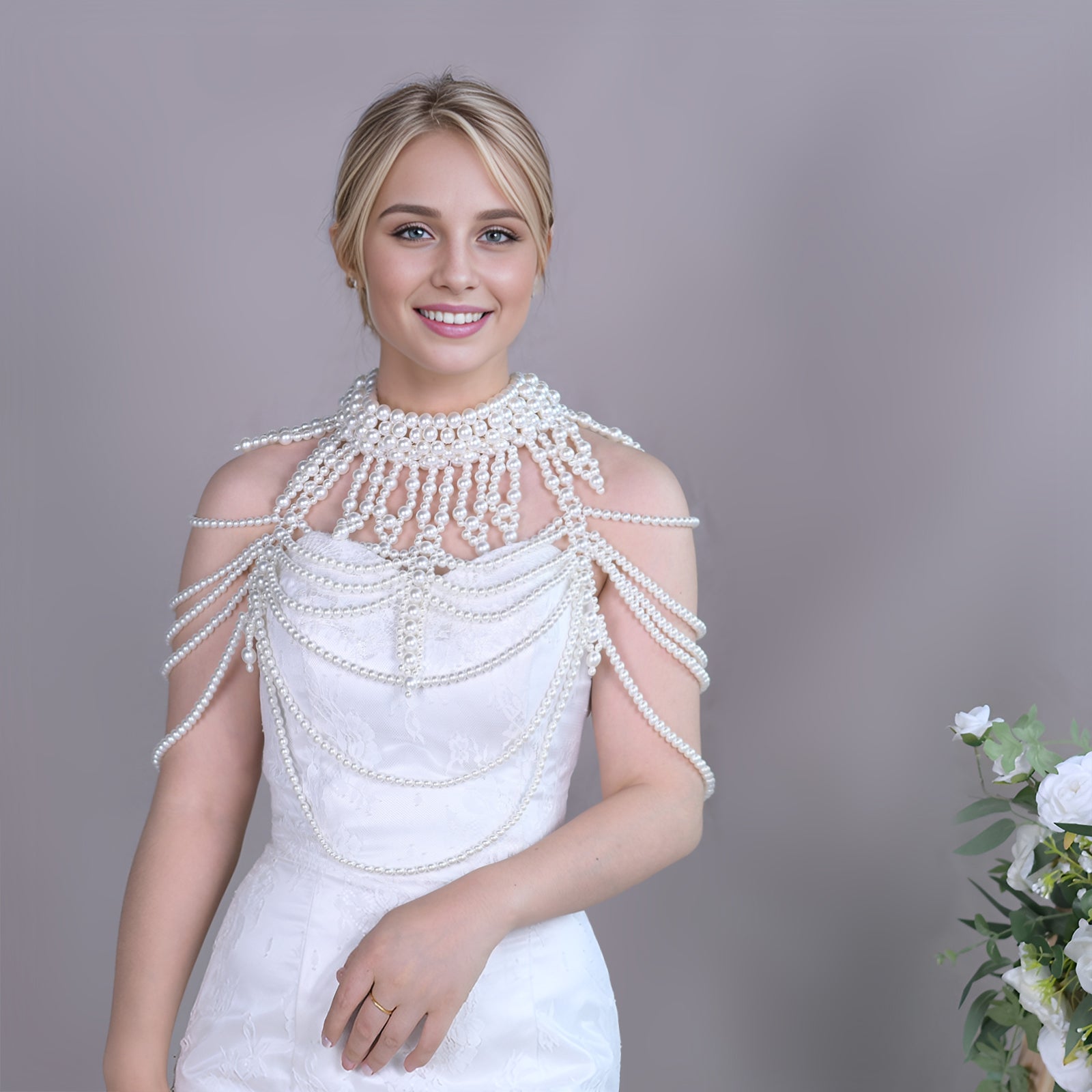 BRIDELLA BVG39 Luxury Imitation Pearl Statement Collar Female Necklaces Body Chain Necklaces Women Sexy Statement Party Jewelry