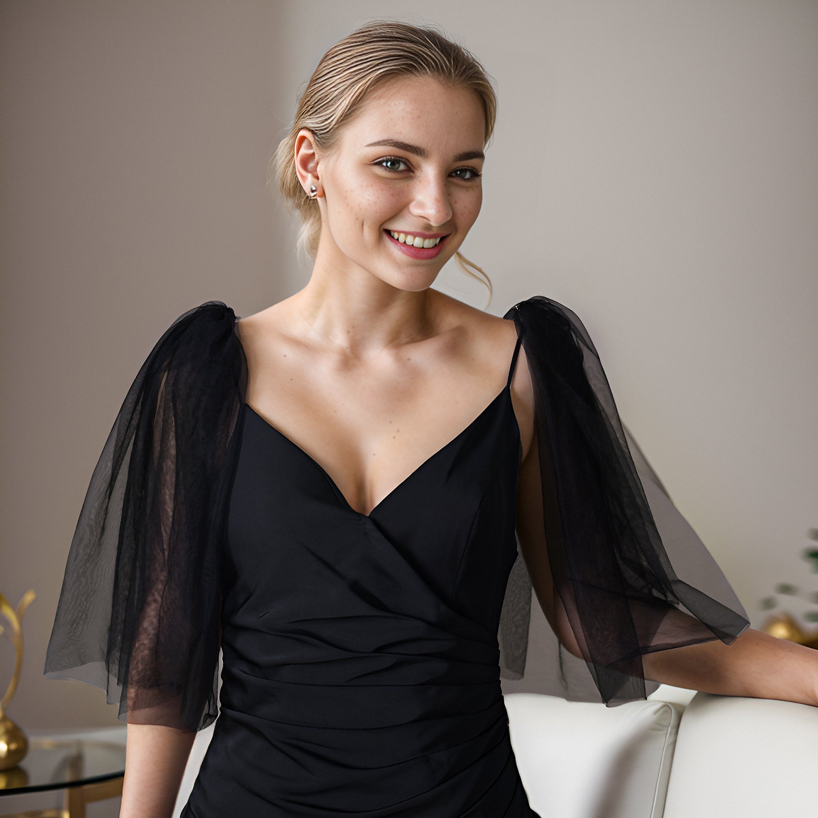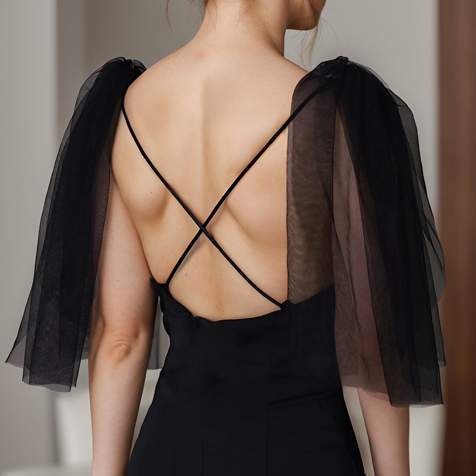 BRIDELLA BVG40 Fashion Black Tulle Dress False Sleeves Bridal Wedding Dress Shoulder Decoration Shawl