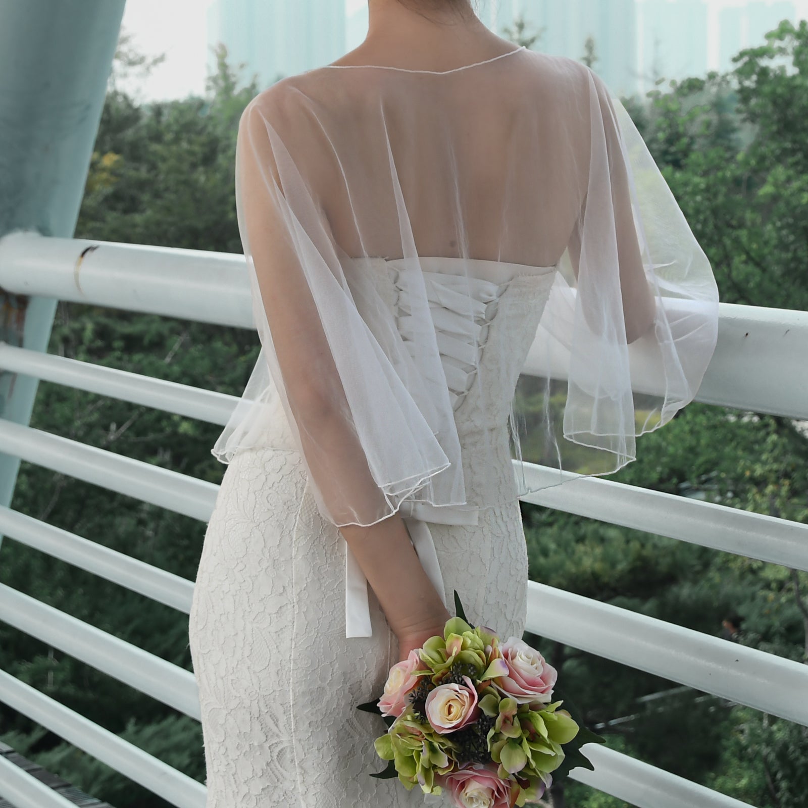 BRIDELLA BVG89 Women's Tulle Shawl Cardigan Dress Decorated Cape Short Top
