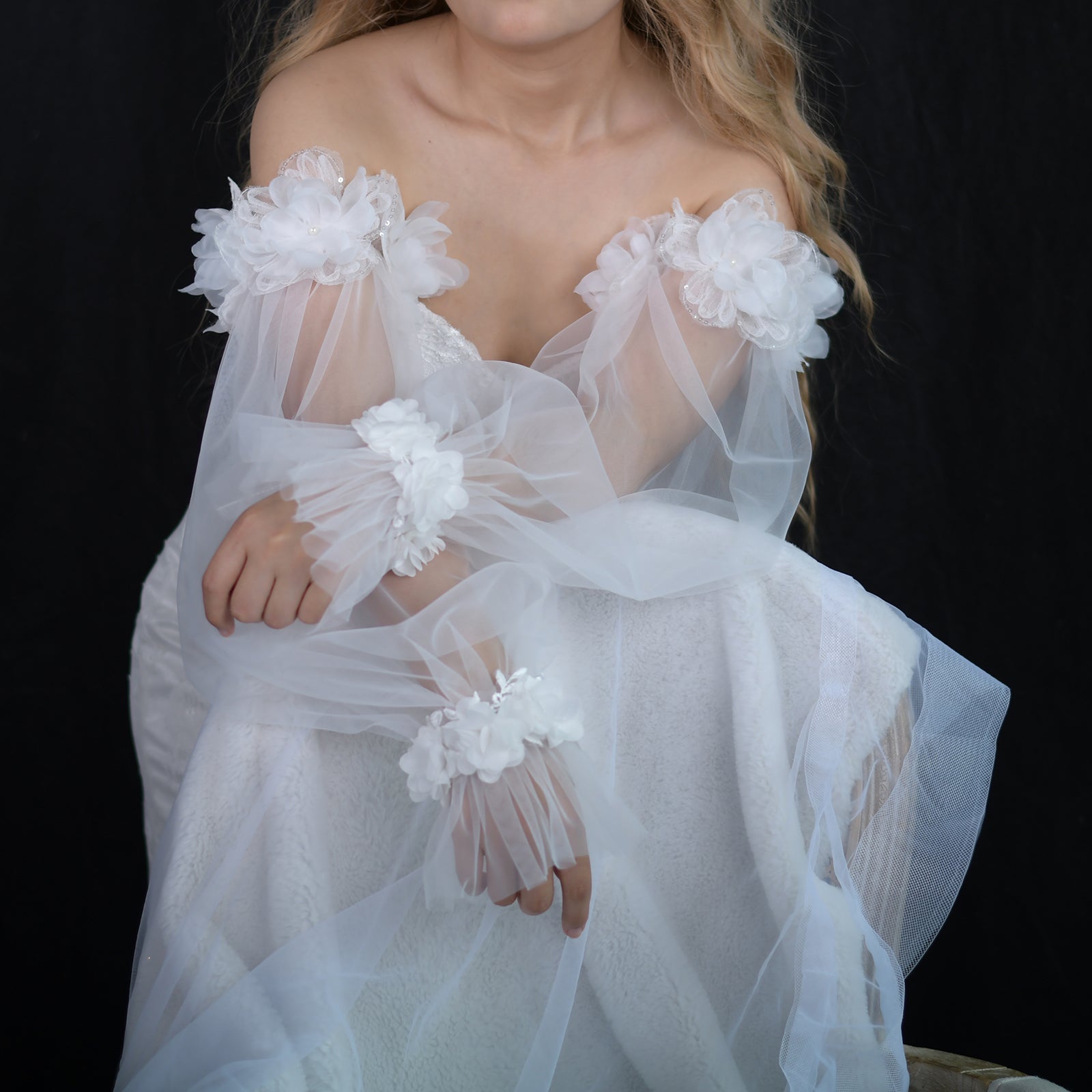 BRIDELLA BVM36 Fashionable Bridal Mesh Gloves (Fingerless) with 3D Flower Shape Wedding Sleeves