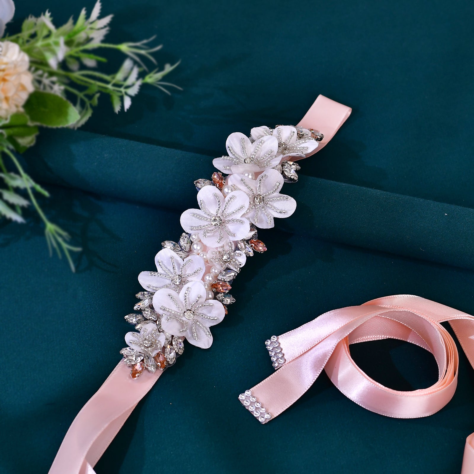 BRIDELLA BS64 Bridesmaid Dress Belt Fresh Flower Elegant Retro Fan Belt Decoration Suitable For Pai