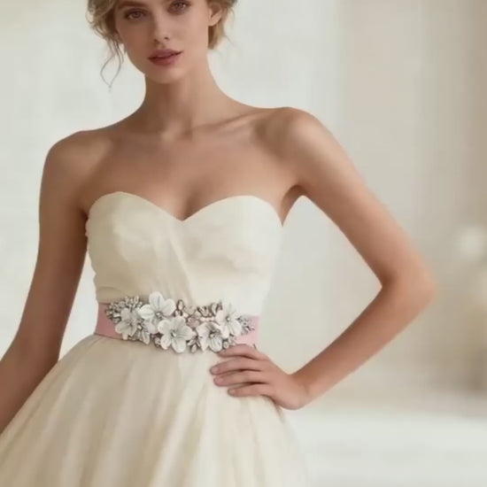Elevate your look with this ivory rhinestone and flower belt, perfect for weddings, proms, and special occasions.