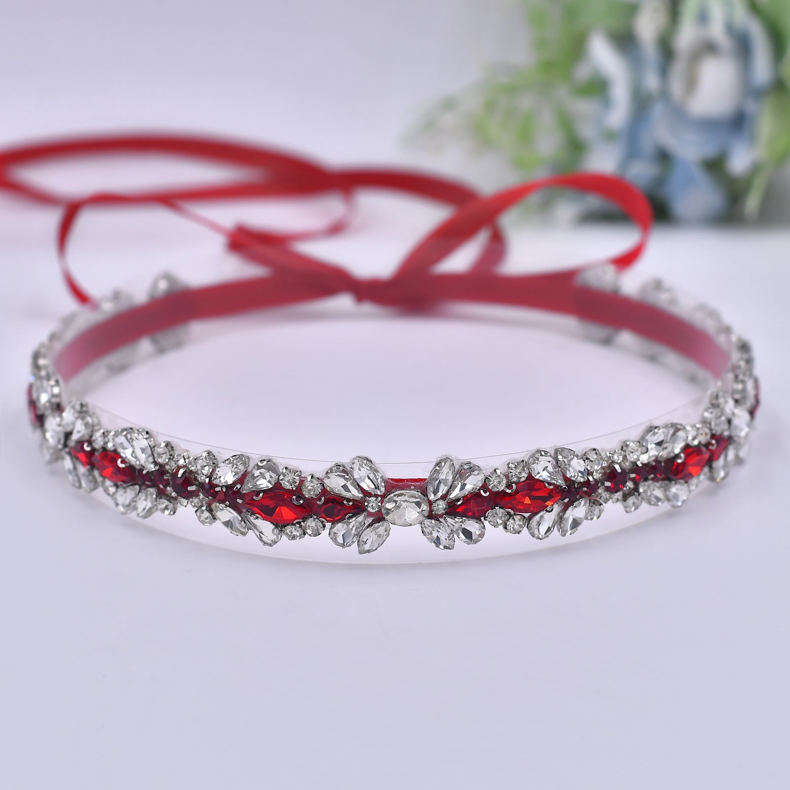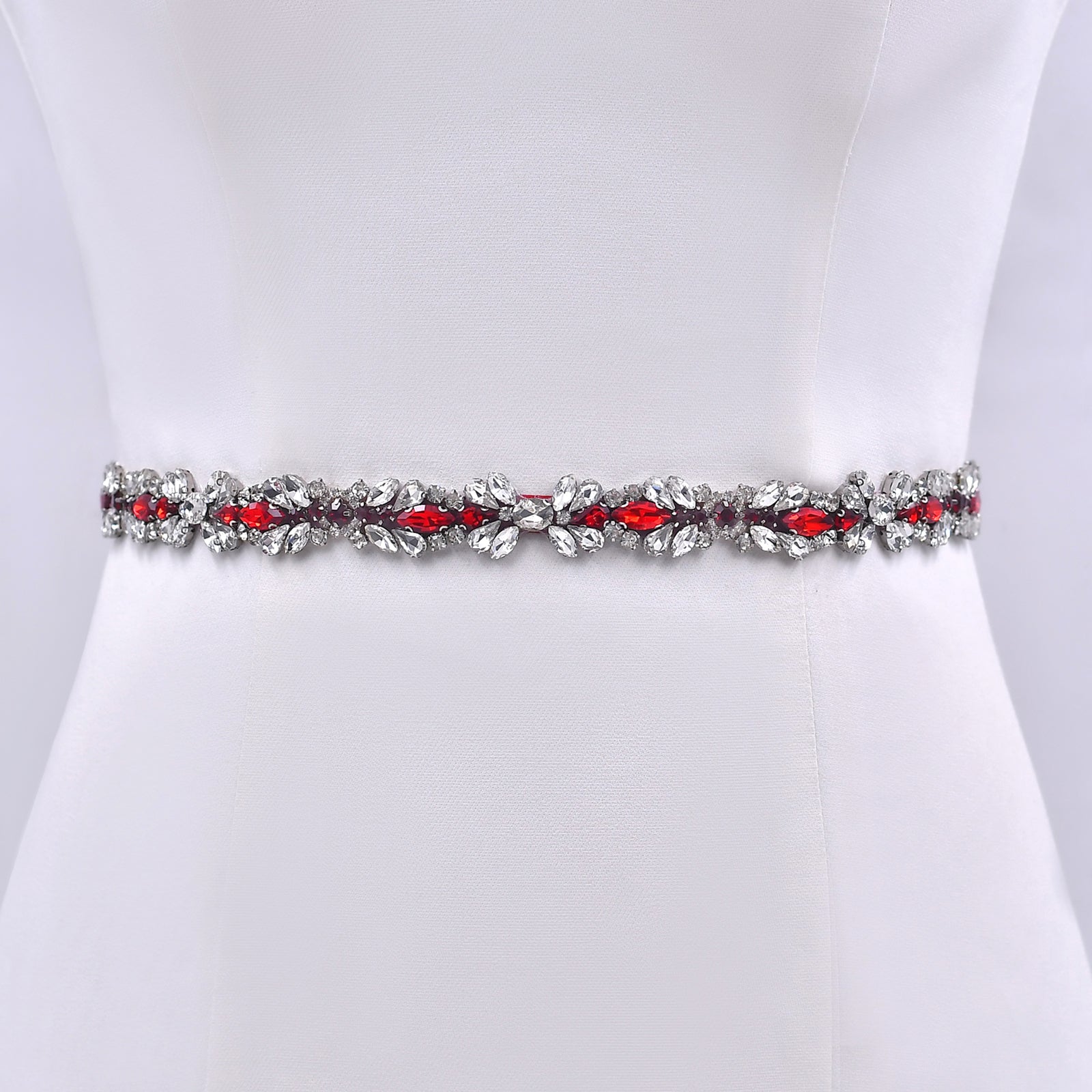 BRIDELLA BS43R Burgundy Diamond Party Dress Belt Elegant Wedding Womens Belt Waist Decoration