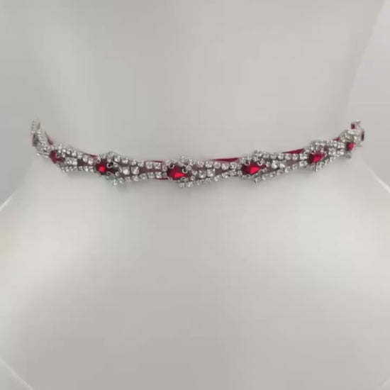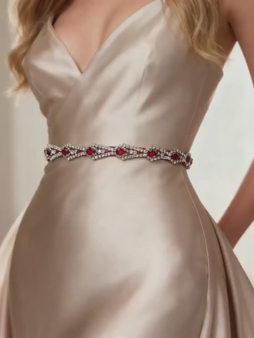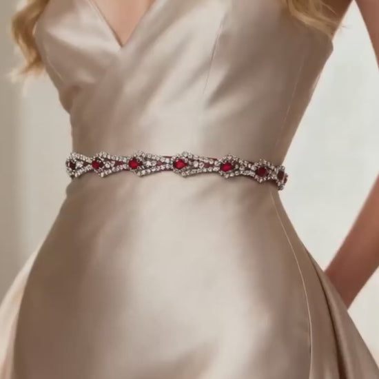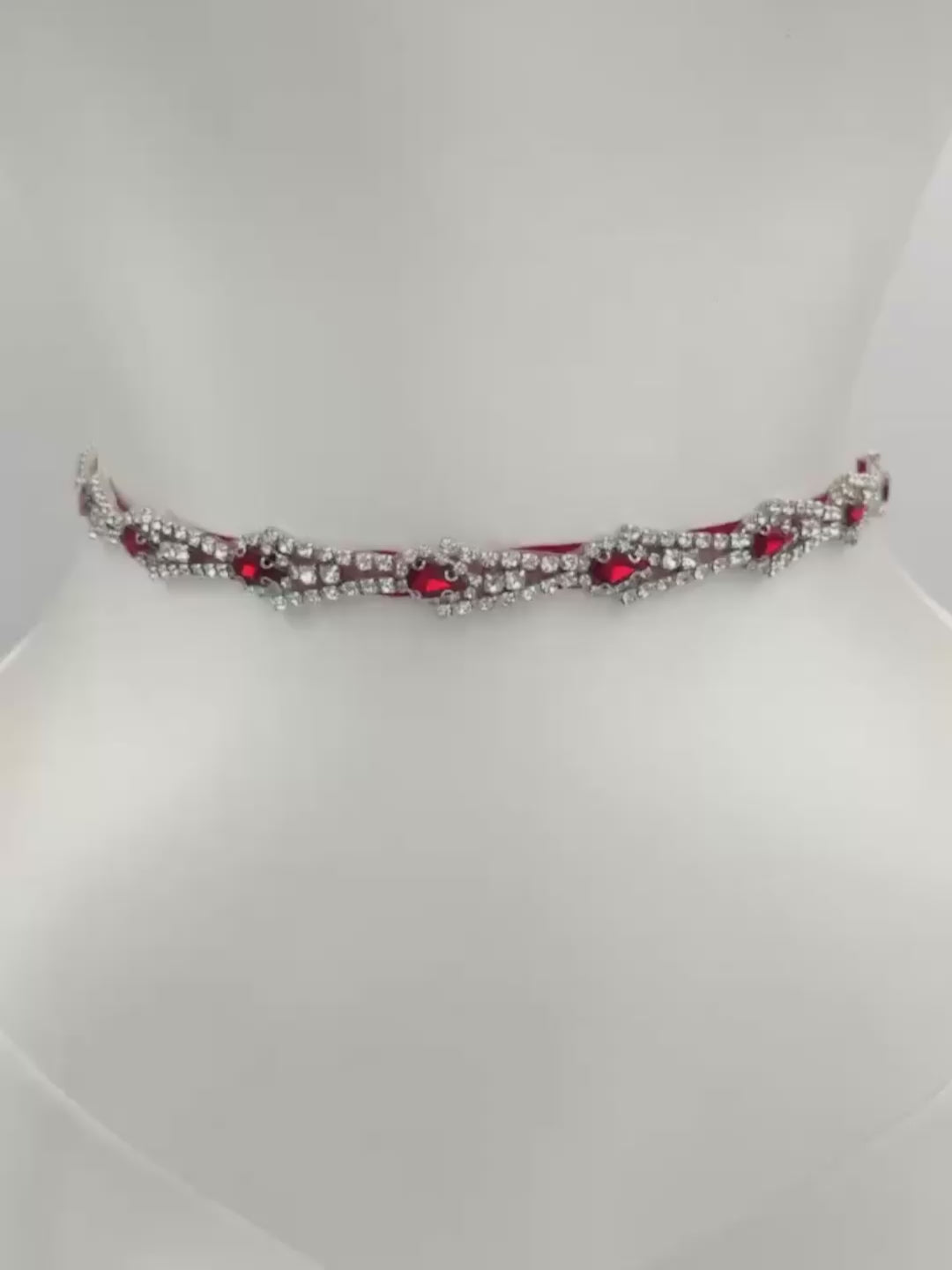 Elevate your look with this red rhinestone belt, perfect for weddings, proms, and special occasions.