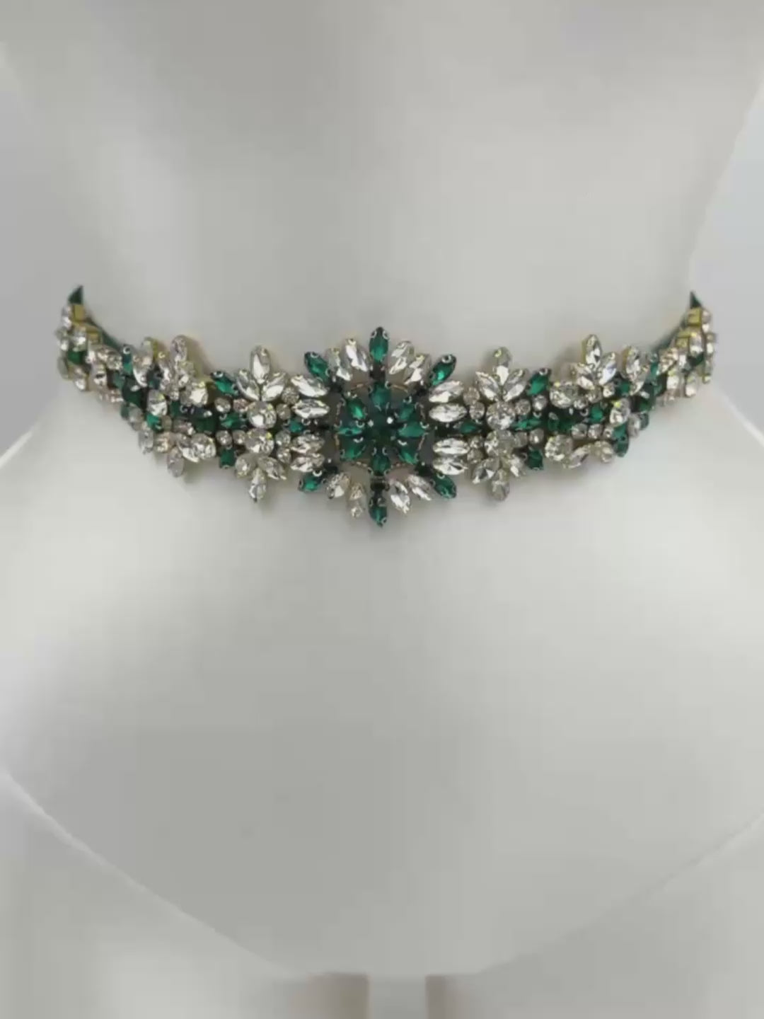 Elevate your look with this green rhinestone belt, perfect for weddings, proms, and special occasions.