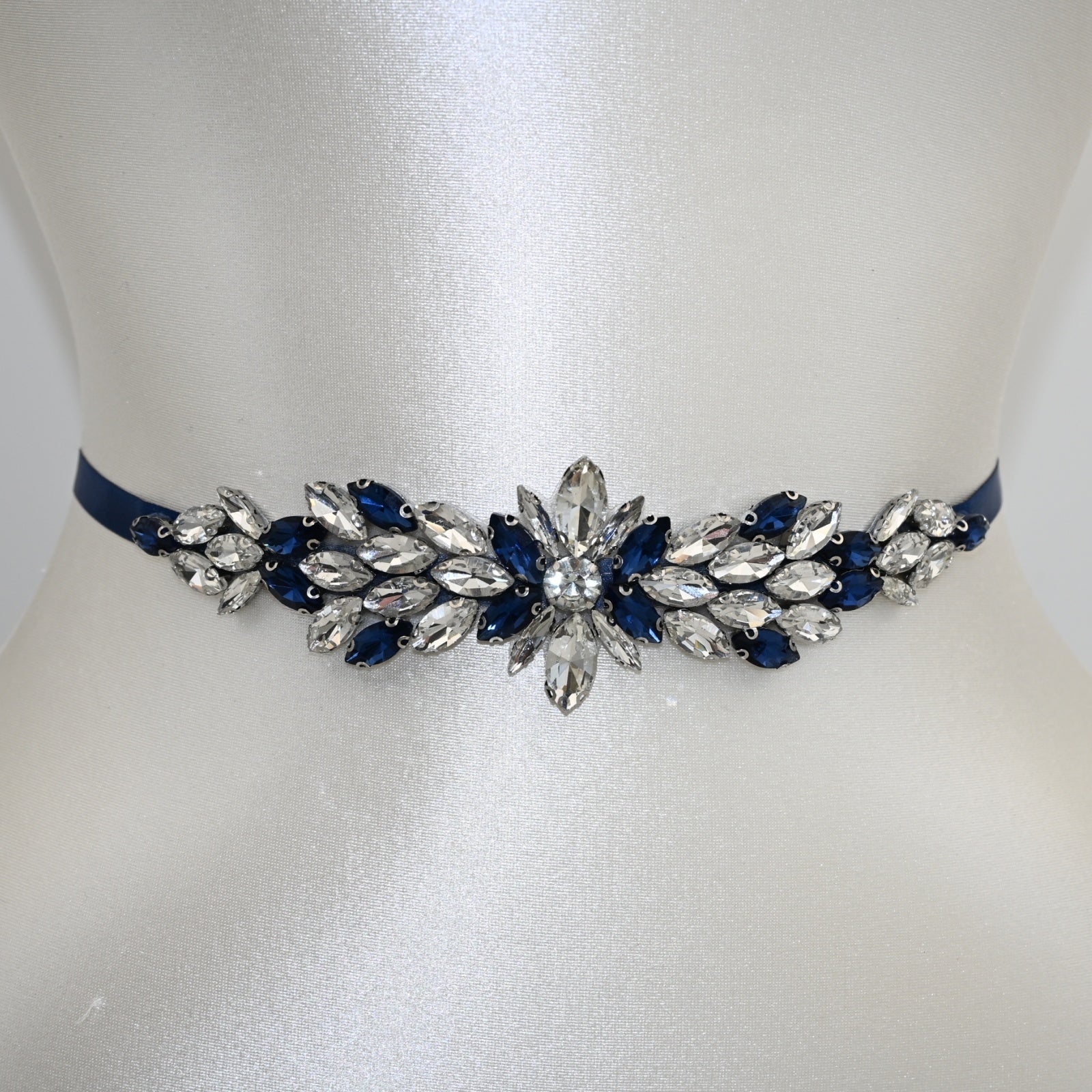 Elevate your look with this navy rhinestone belt, perfect for weddings, proms, and special occasions.