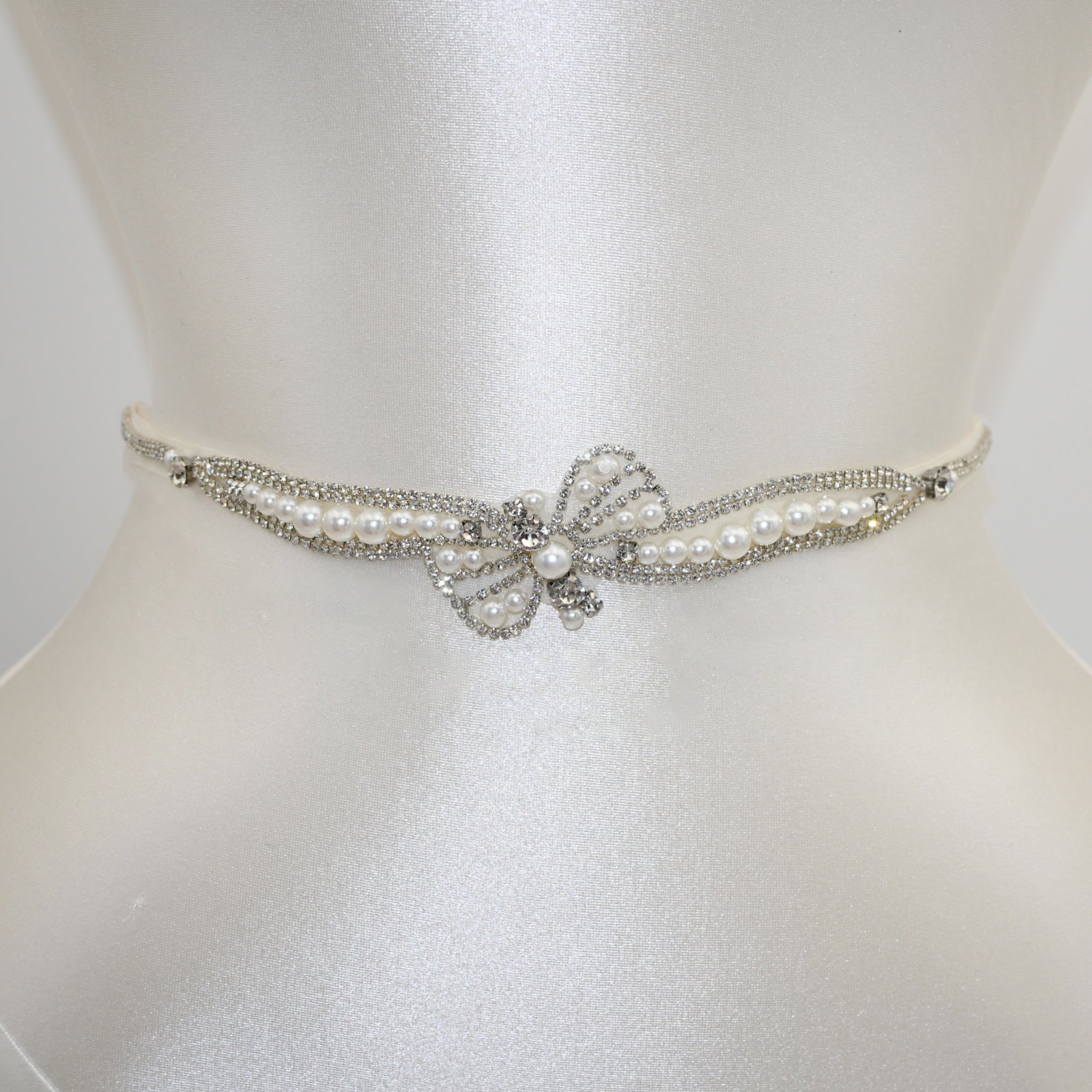 Bridella BS97 Off White Rhinestone & Pearl Belt