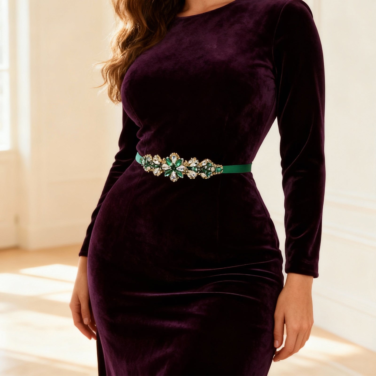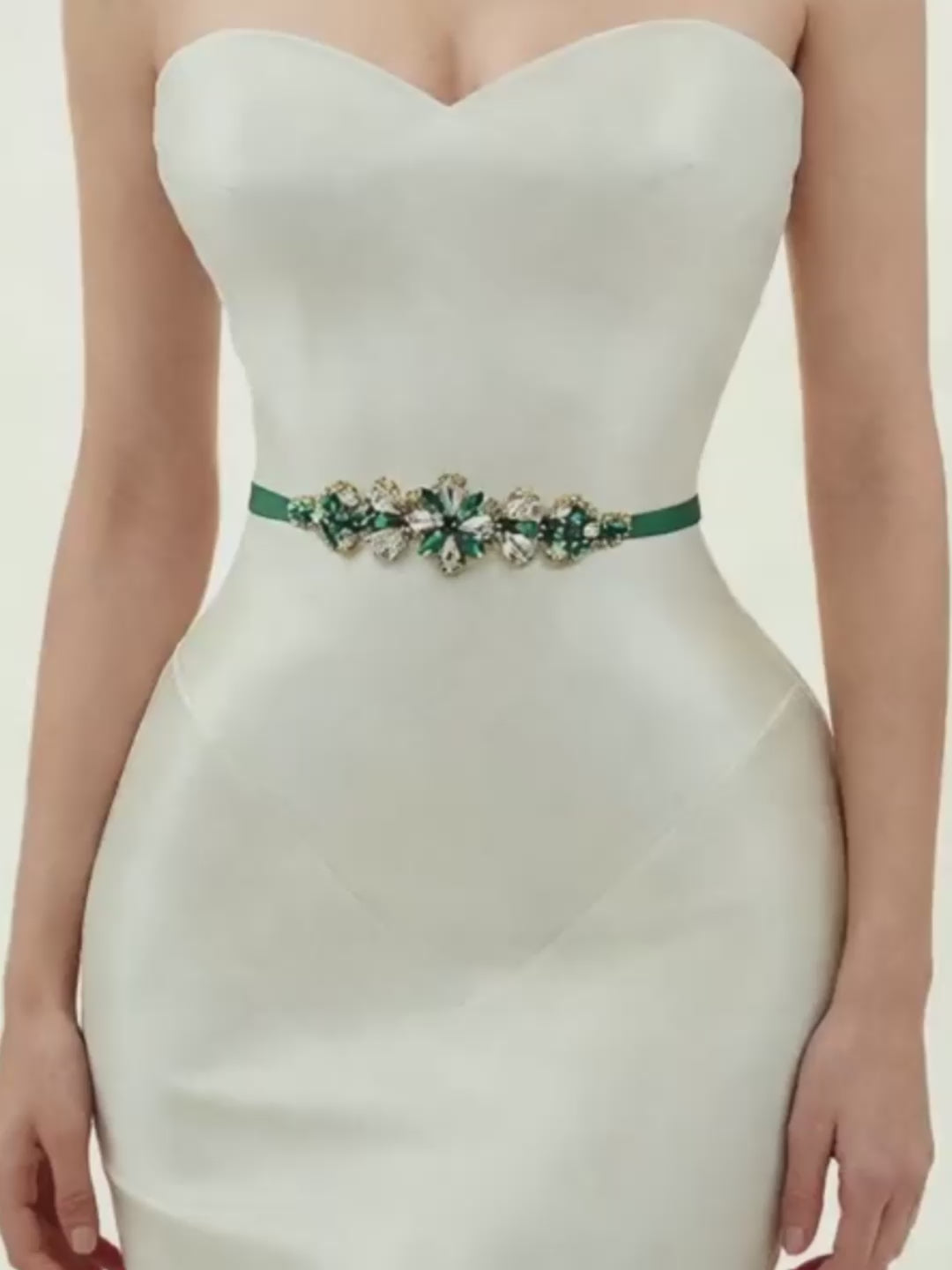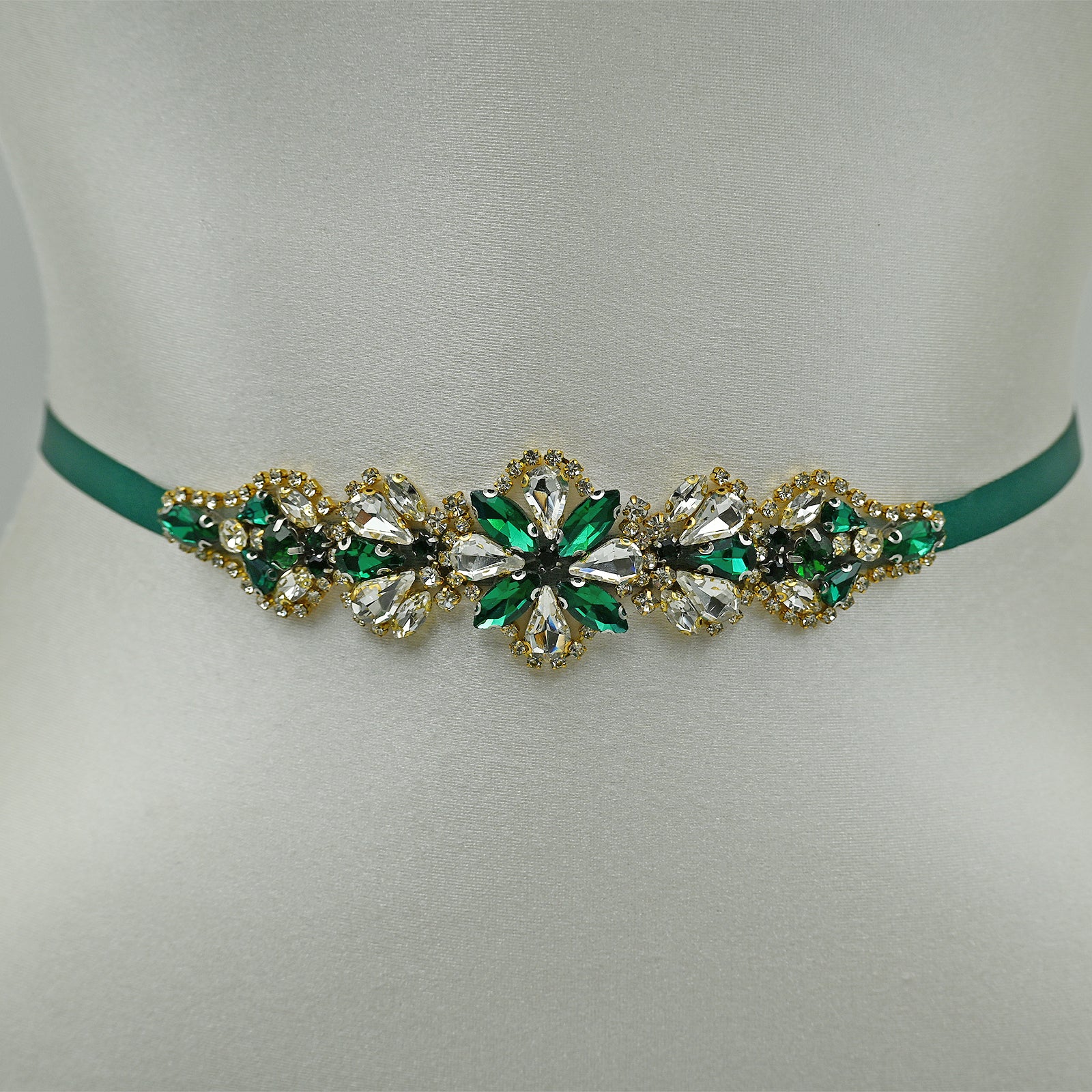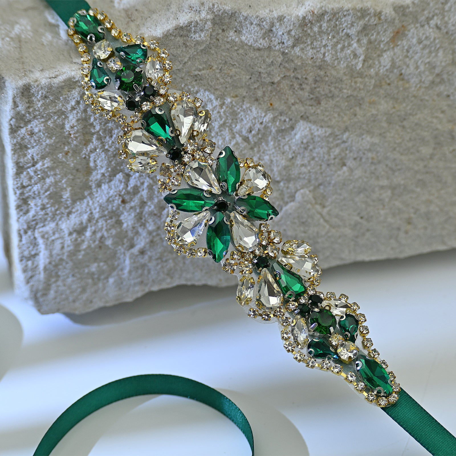 Elevate your look with this green rhinestone belt, perfect for weddings, proms, and special occasions.