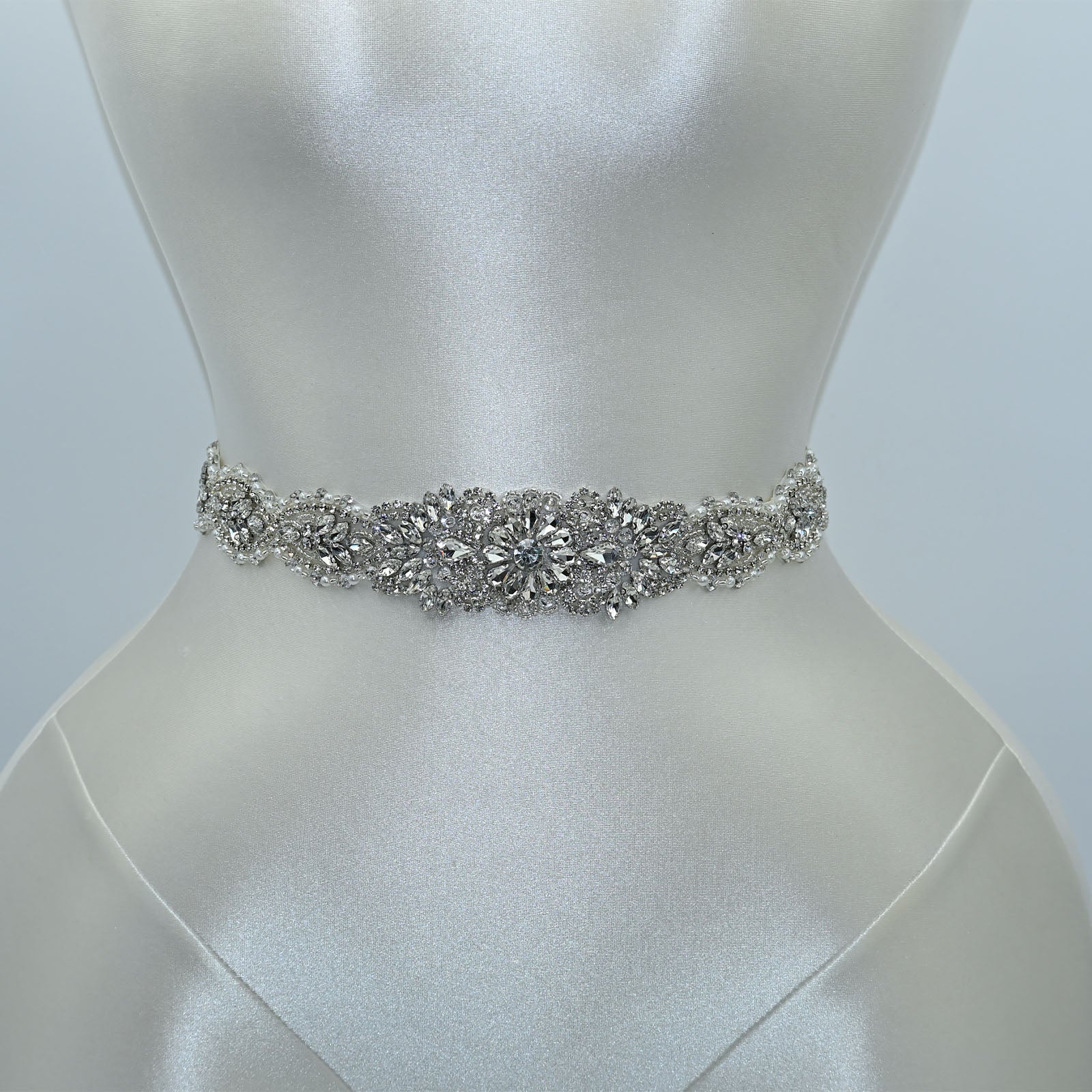 Bridella BS119 Silver Rhinestone & Pearl Belt