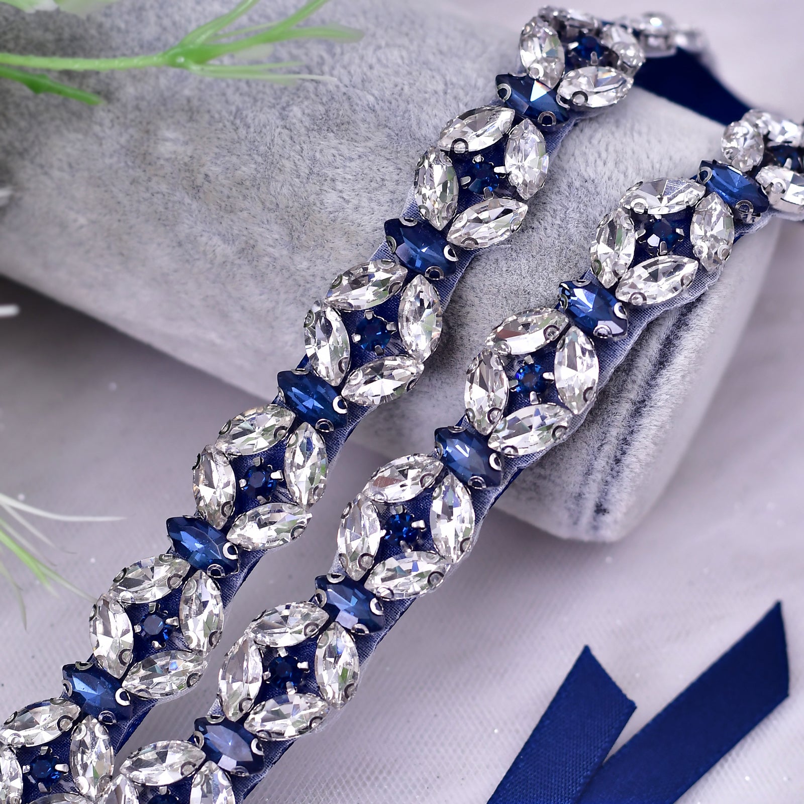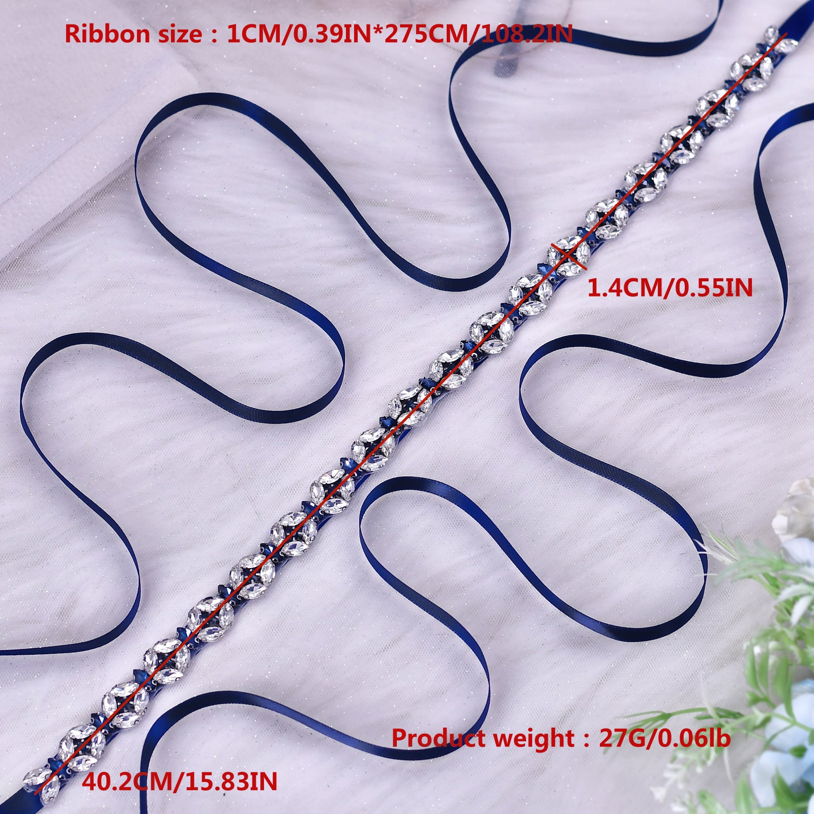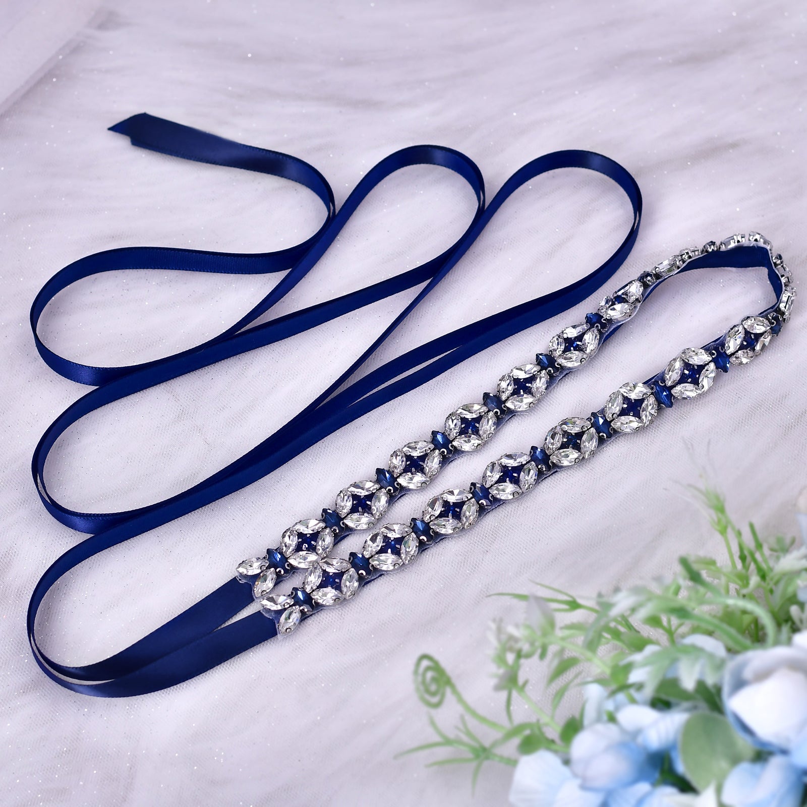 BRIDELLA BS111ML Extended Full Diamond Waist Seal Deep Blue Dress Thin Waist Chain Strap Belt
