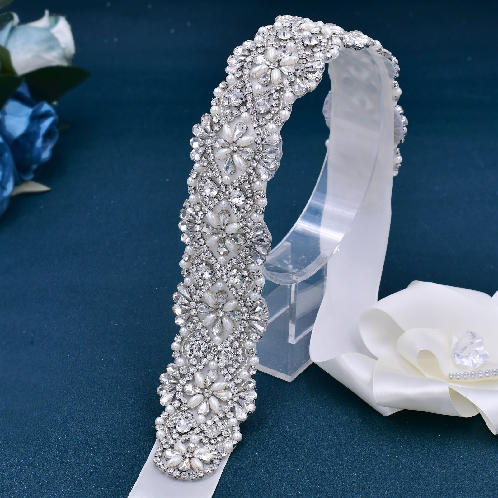 BRIDELLA BS04B Light Luxury Style Womens Decorative Waist Accessories Beige Satin Strap Scenes