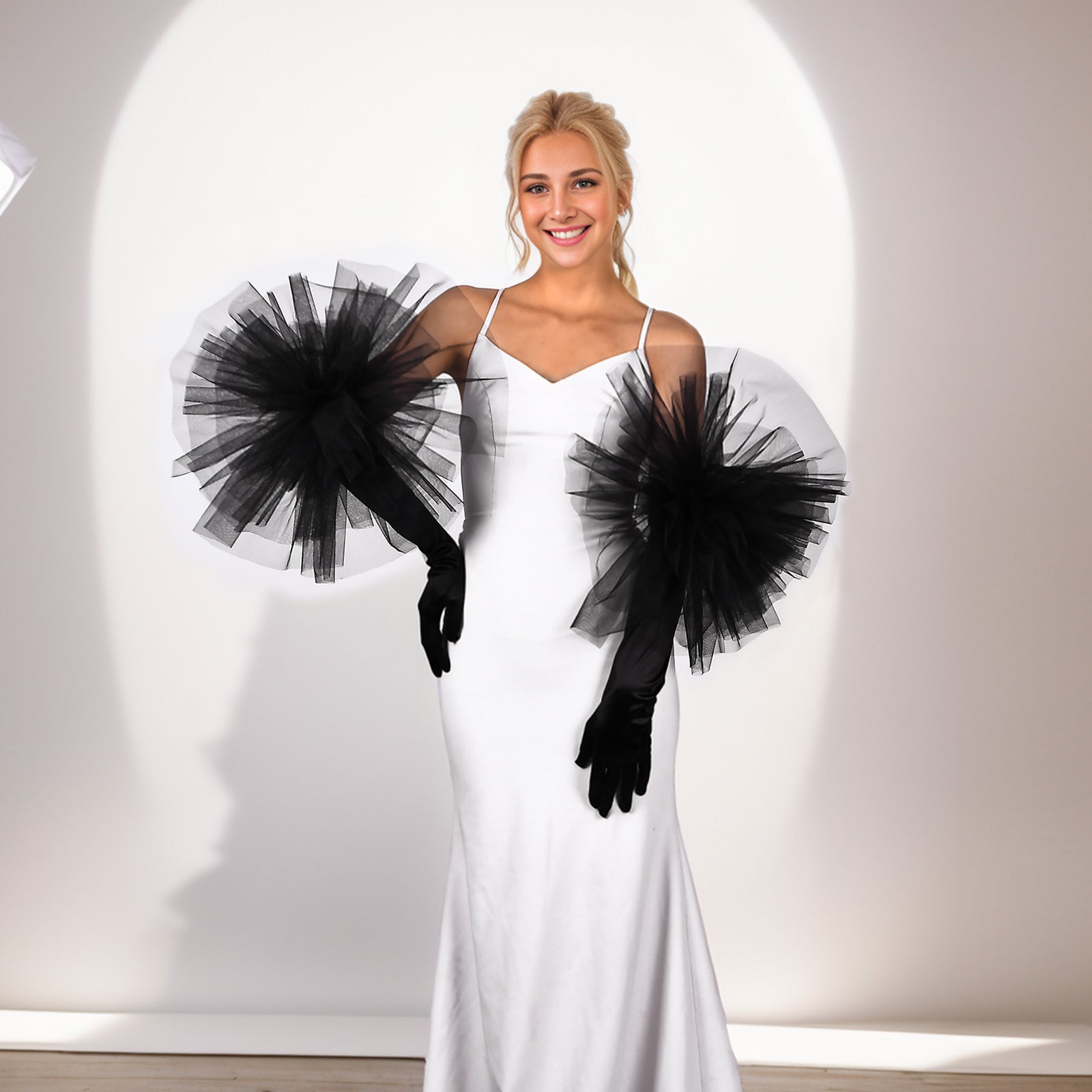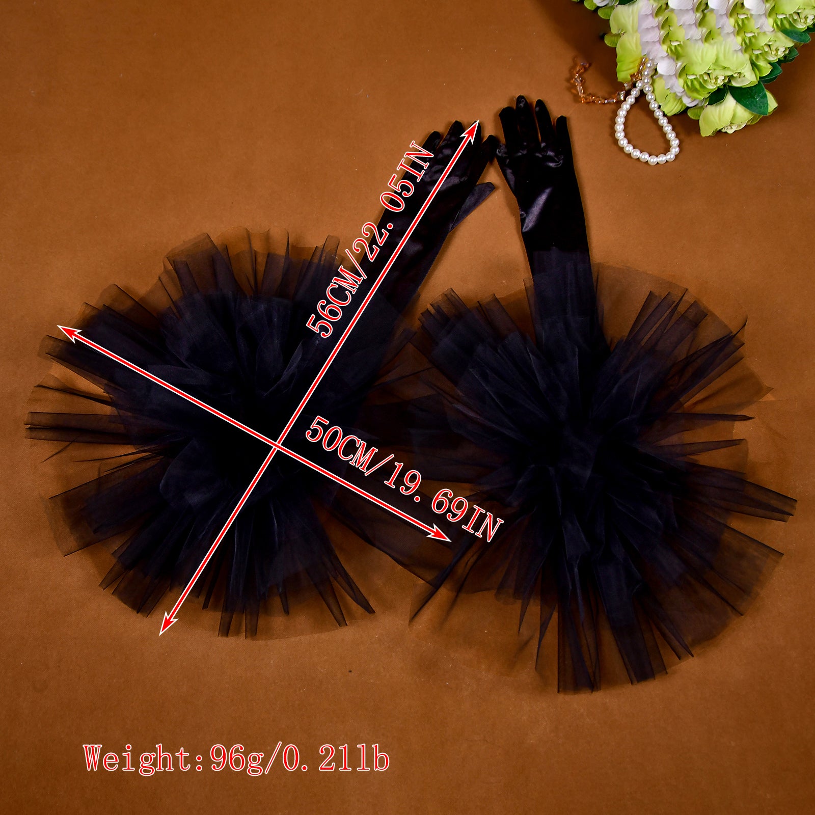 BRIDELLA BMM10 Gothic Black Large Flower Bridal Gloves Wedding Dress Wedding Accessories Stage Performance Props