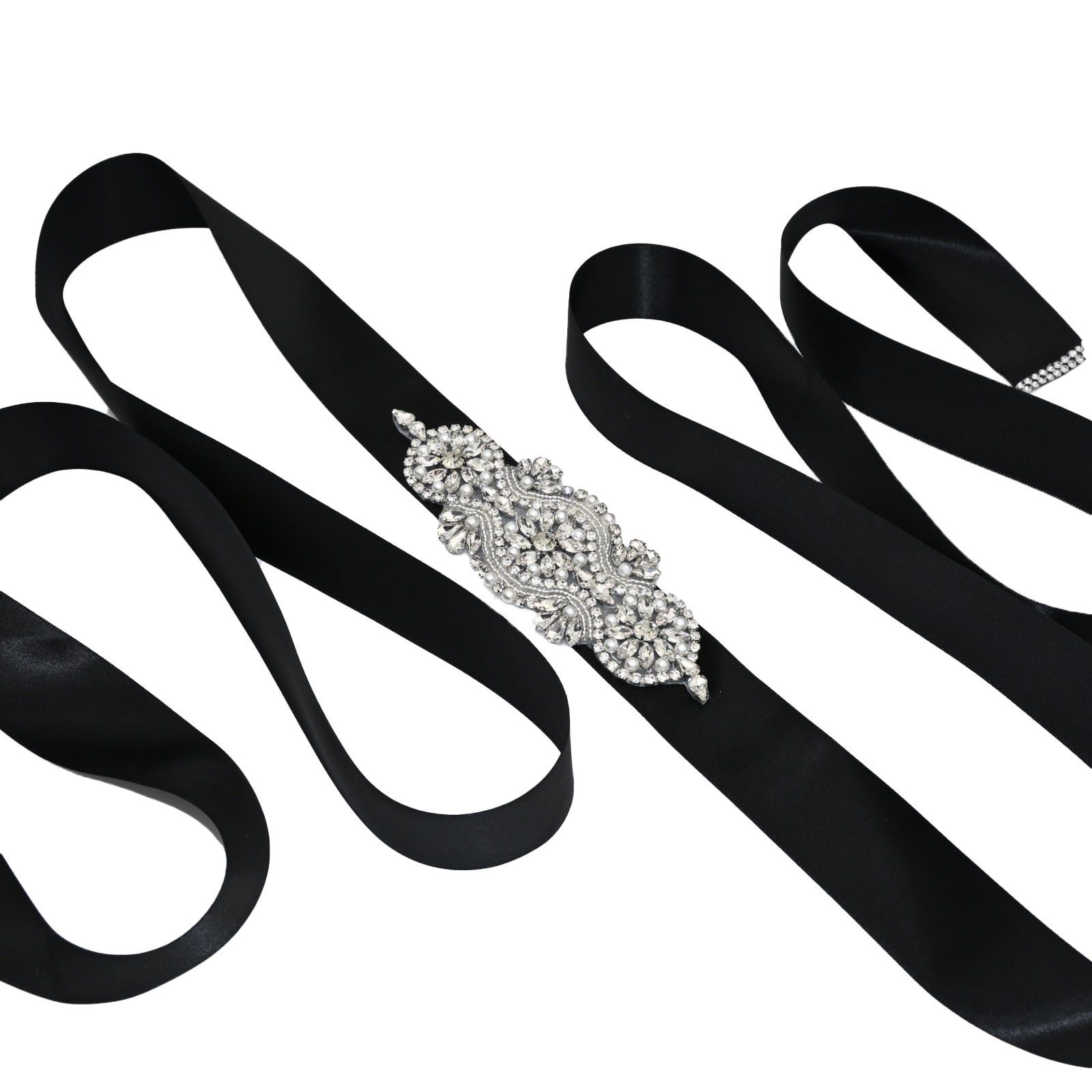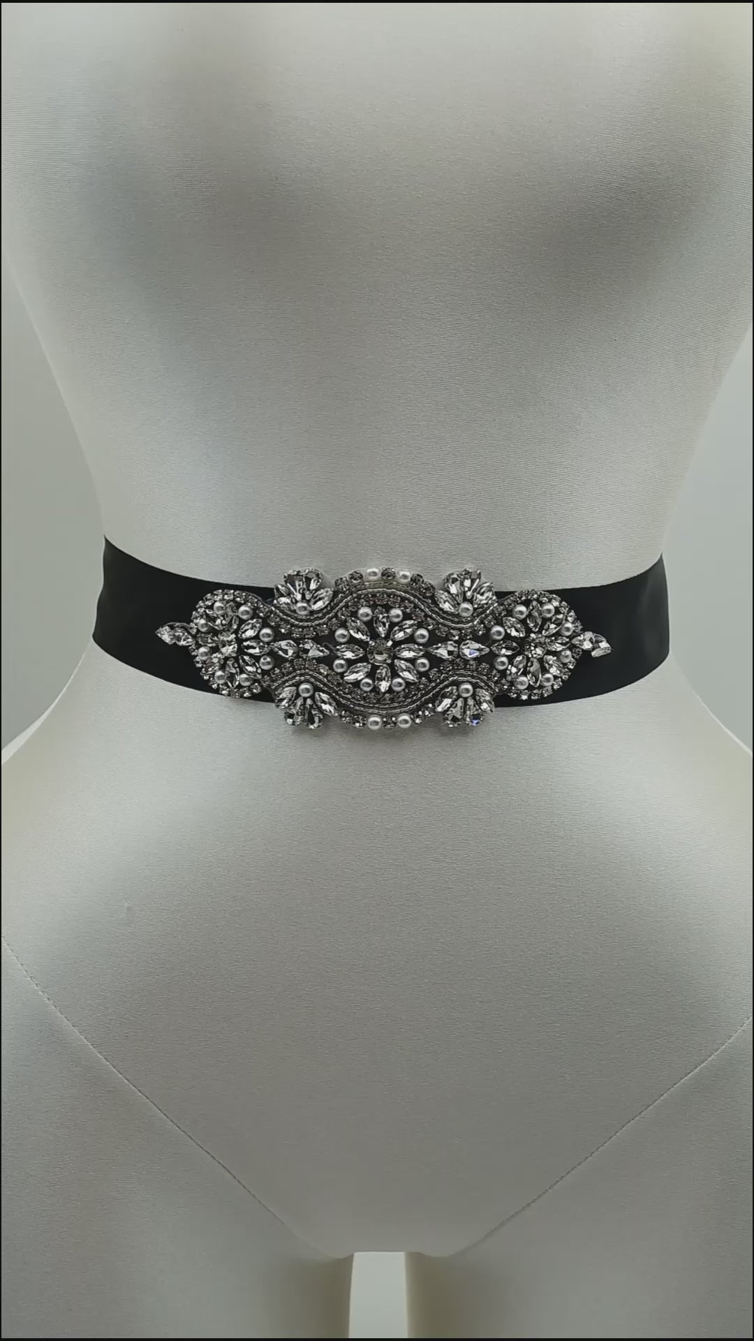 Bridella BS05 Black Rhinestone & Pearl Belt